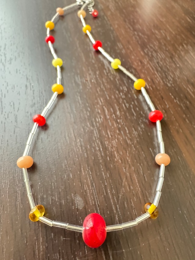 天然石らしい【ロードナイトとヨーロッパ製ガラスビーズのネックレス】 このネックレスは、ロードナイトの美しいピンクの石とビーズの組み合わせが特徴です。 それぞれの石やビーズを真っ赤にレインボーが混ざったような粒ガラスビーズで繋いだビーズネックレスらしい仕上がりです。 日常使いや特別なイベント、おしゃれにこだわる方に最適のアイテムです^ ^ 勿論重ね付けにもおススメです -----~-----~-----~-----~----- material: 天然石(ロードナイト).ガラス size: 長さ約39〜45cm -----~-----~-----~-----~-----