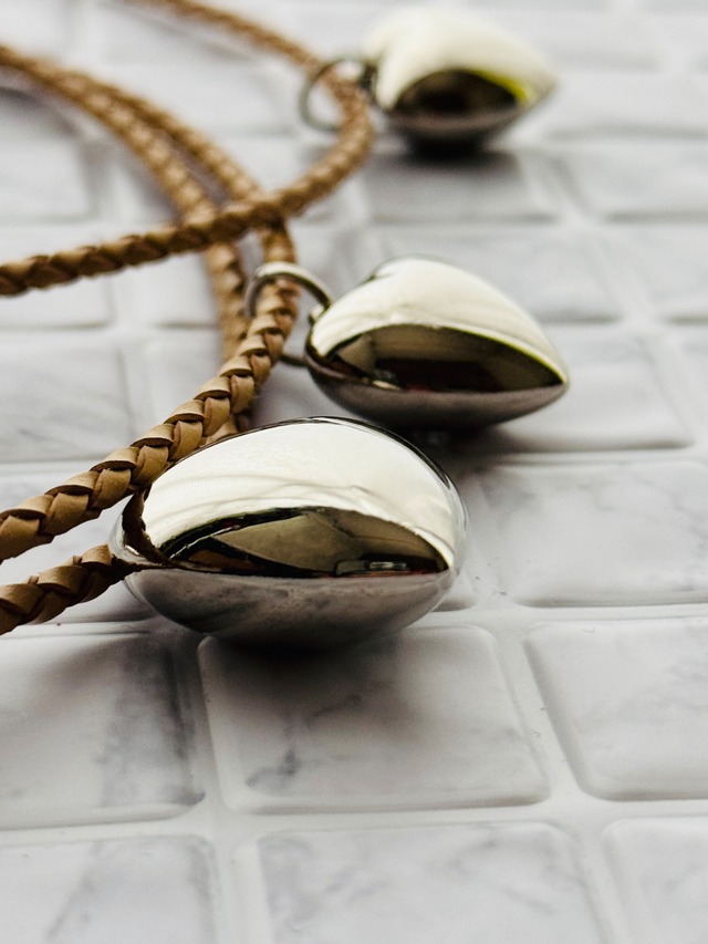 メタルハートのレザーチョーカー、シンプルでありながら個性を際立たせる魅力のアイテムです♡ スタイリッシュなメタルハートが、レザーの質感と調和し、おしゃれに仕上げます。素肌にも おすすめ。 ハートのモチーフはヴィンテージ素材で、甘さを保ちながらもクールな印象を与え、あなたの個性を美しく演出します。 モチーフ取り外し自由。他のチャームでアレンジしたりチャームなしにするのもあり! こちらの四編みレザーコードは六角形が美しいマグネットタイプで着脱も楽ちんです ハート大縦約2.4cm ハート小縦約2cm -----~-----~-----~-----~----- material: メタル、レザー size: 40cm -----~-----~-----~-----~----- ■こちらのハートチャームはヴィンテージシルバーでとても美しいです ■革ひもについて ※アンティーク仕上げの為色ムラ、キズ等がみられる場合がありますが、初期不良ではございません。 ※革製商品はロットごとに若干色目が異なる場合がございます。 ■マグネットクラスプについて ※本製品は極小の強力なマグネット磁石が使用されています。 ※医療電子機器等装着されている方はご使用をお控えください。