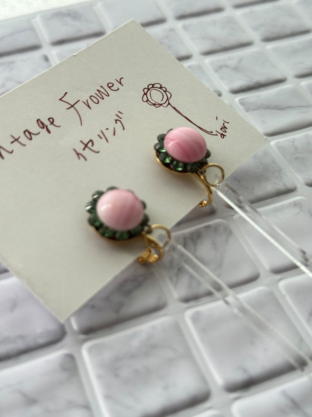 ヴィンテージのマーブル模様が美しいガラスとリング型ラインストーンが花モチーフになった 魅力的なピアスです。華やかなデザインが耳元を彩り、どんなコーディネートにもぴったりフィットします! 軽やかな素材を使用しており、長時間の着用でも負担を感じさせない快適さが自慢です。 ネジバネイヤリング -----~-----~-----~-----~----- material: 合金.樹脂 .ガラス size: 約5cm(ぶら下がり位置より) -----~-----~-----~-----~-----