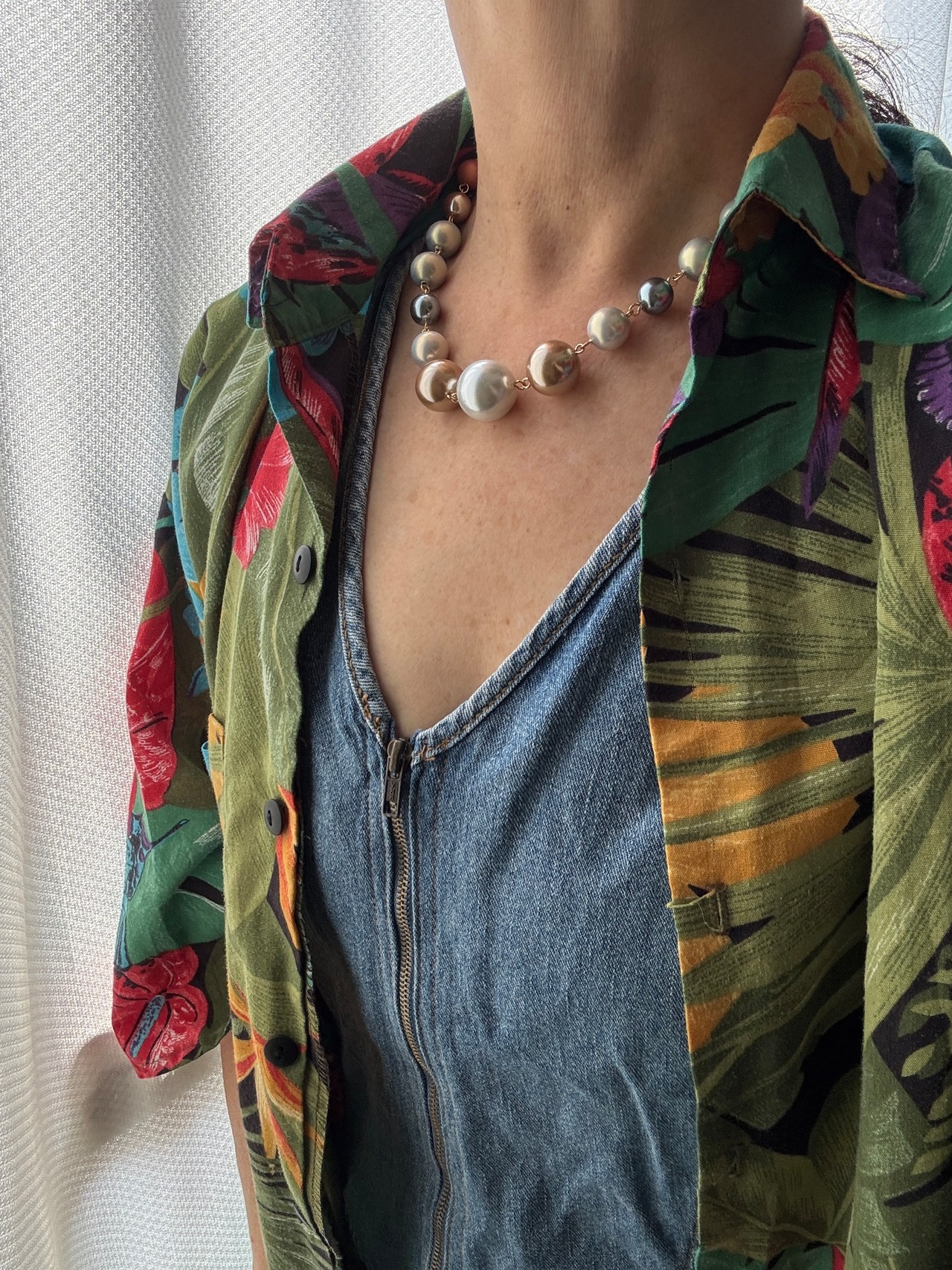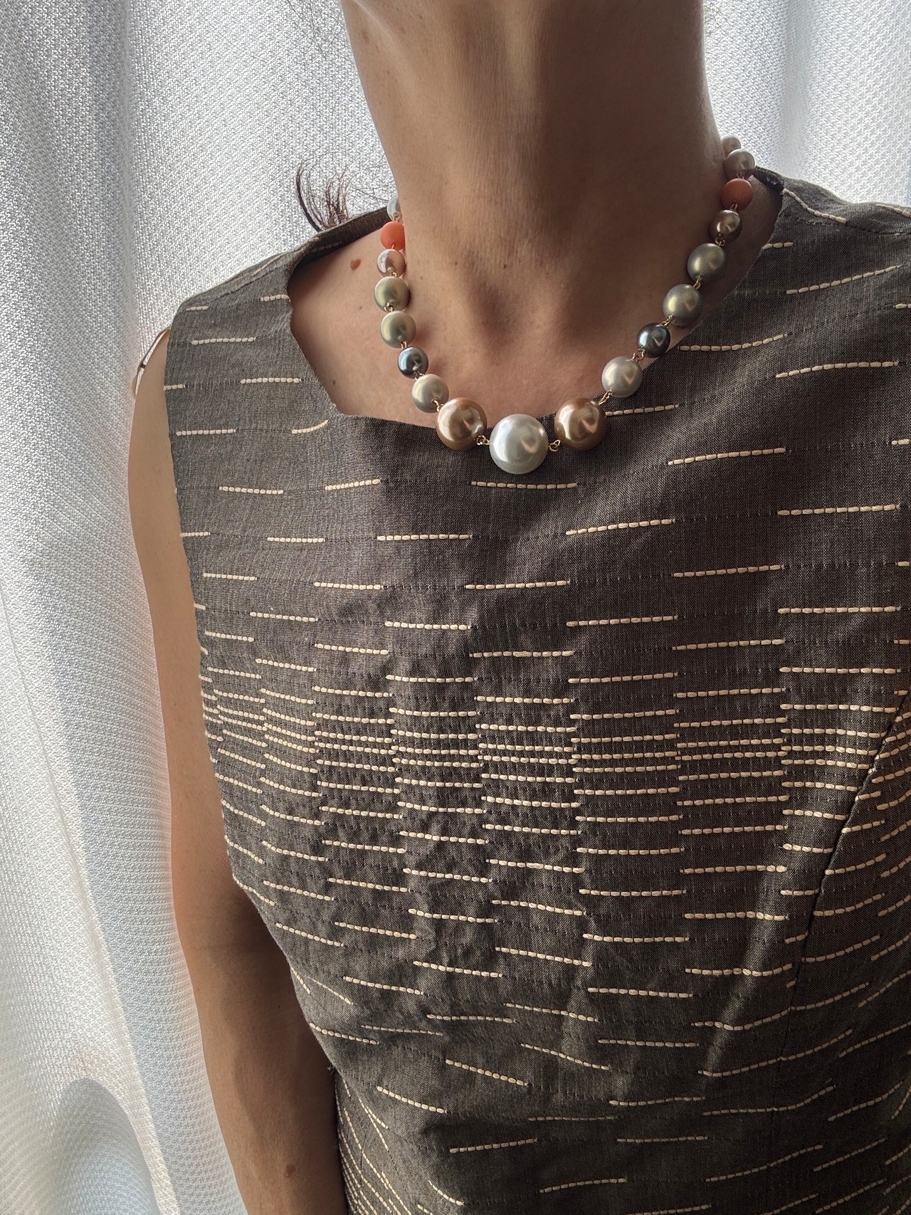 ランダムサイズのパールがエッジの効いたネックレスでおしゃれのアクセントにピッタリ!