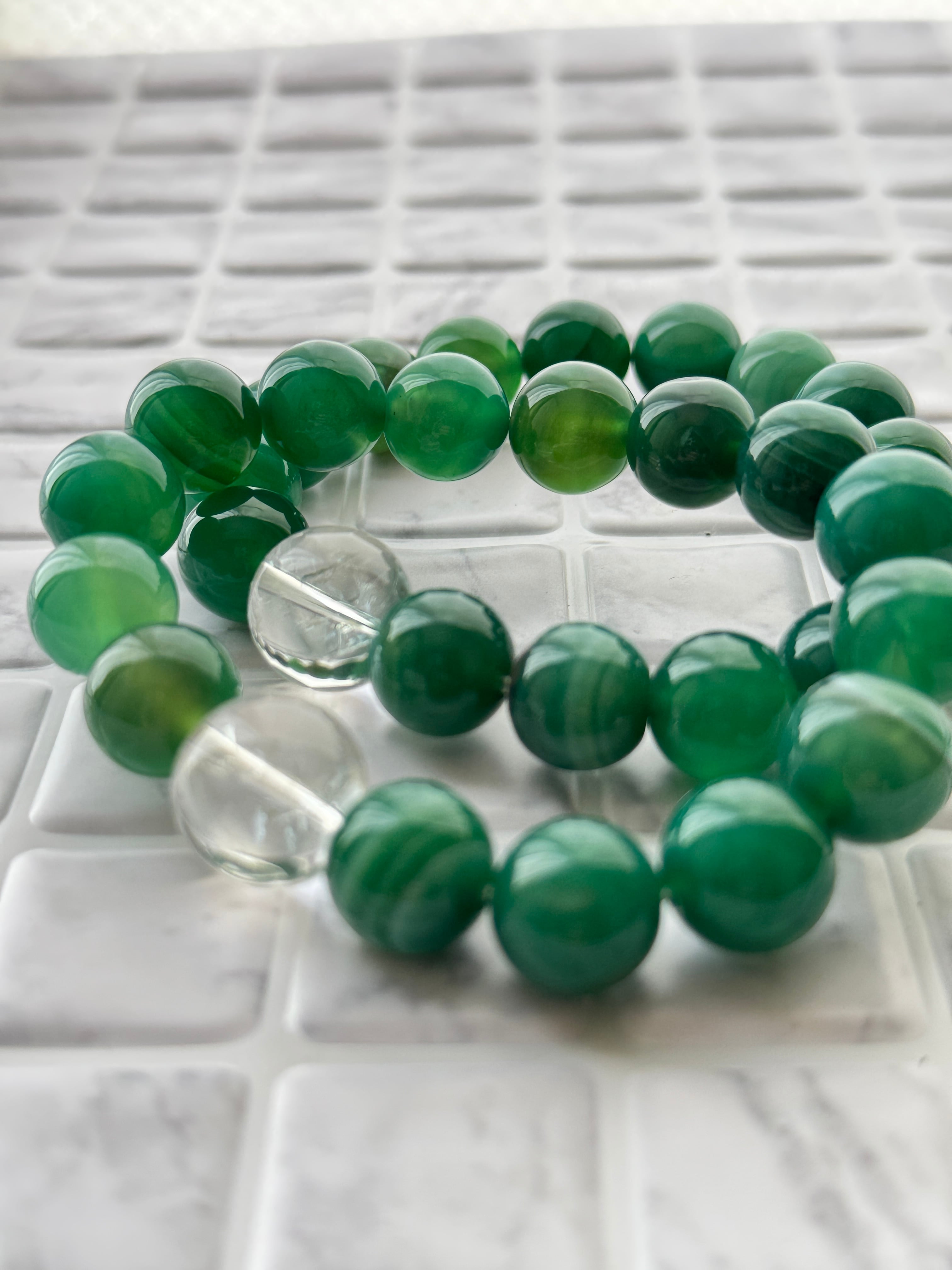 自然の美しさを感じさせるグリーンアゲードを使用した、エレガントかつ個性的なブレスレットです。鮮やかなグリーンの色合いが手首を引き立て、気分も上げてくれるブレスレットです