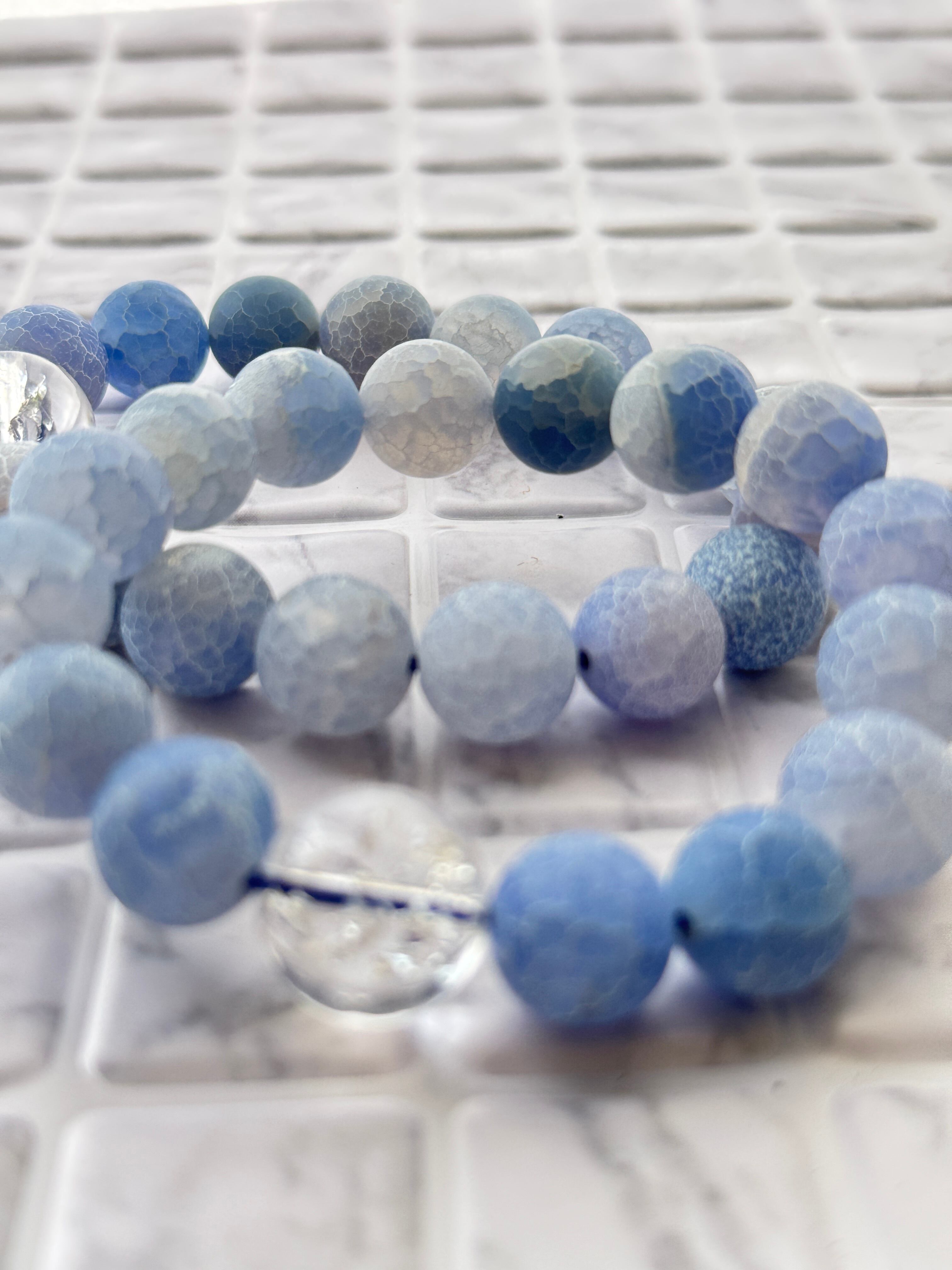 独特な模様を持つブルークラックアゲードを使用した、スタイリッシュで印象的なブレスレットです。ニュアンスのある青色が手首を美しく引き立て、個性を表現するアイテムとして最適です。