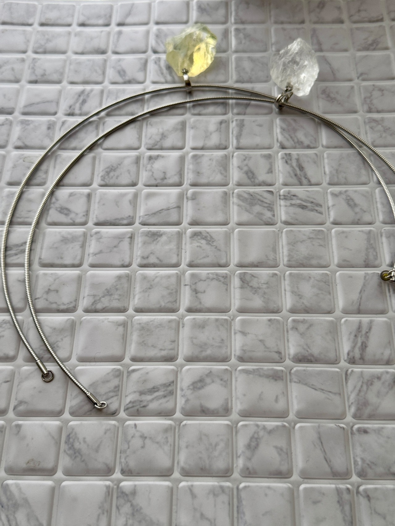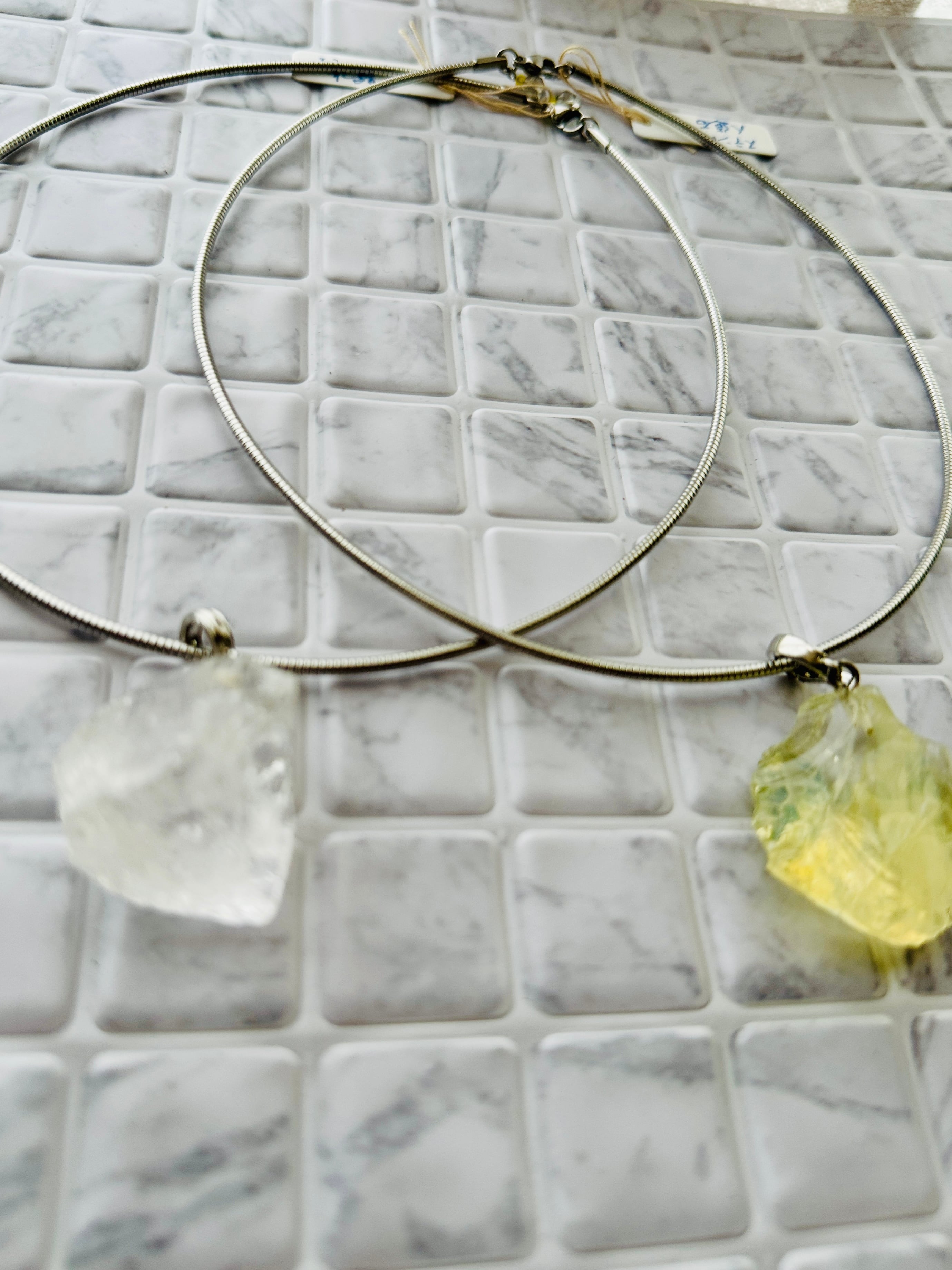 写真のようにクリスタルを通してもオシャレですが、なくても素敵な張りのあるチョーカーです。