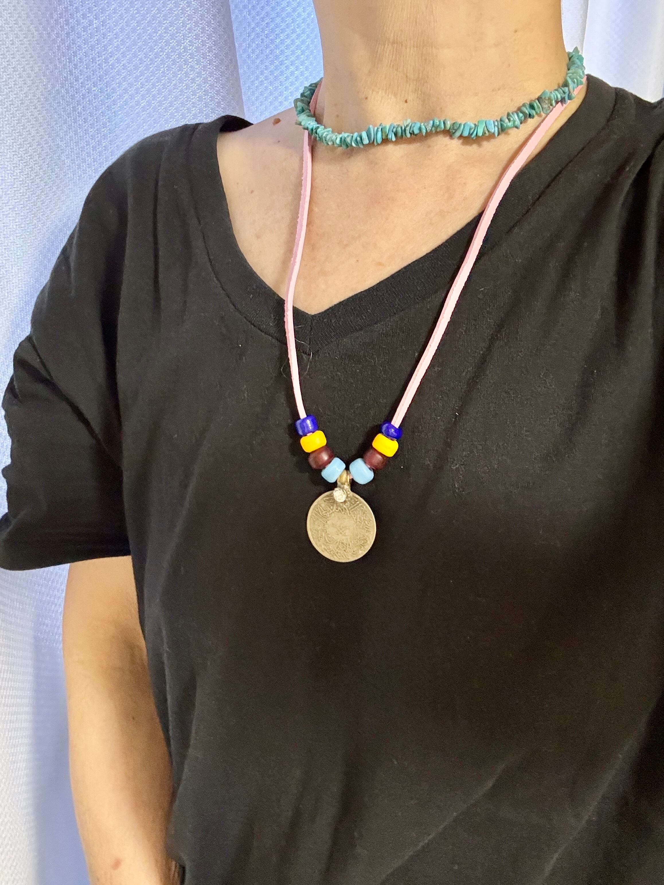 アフガンコインに色とりどりビーズが華やかに組み合わさったAfghan coin necklace/PINKは、オリジナルスタイルを引き立てる美しいアクセサリーです。