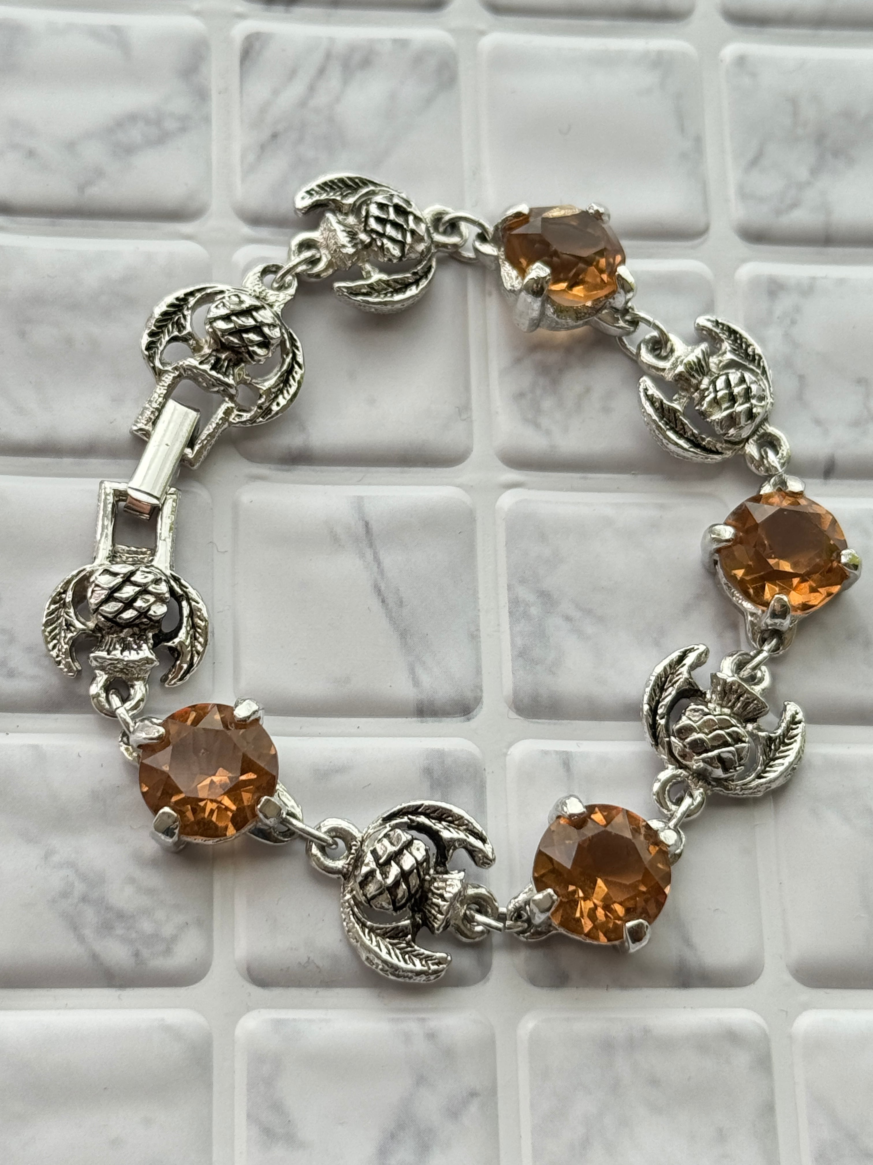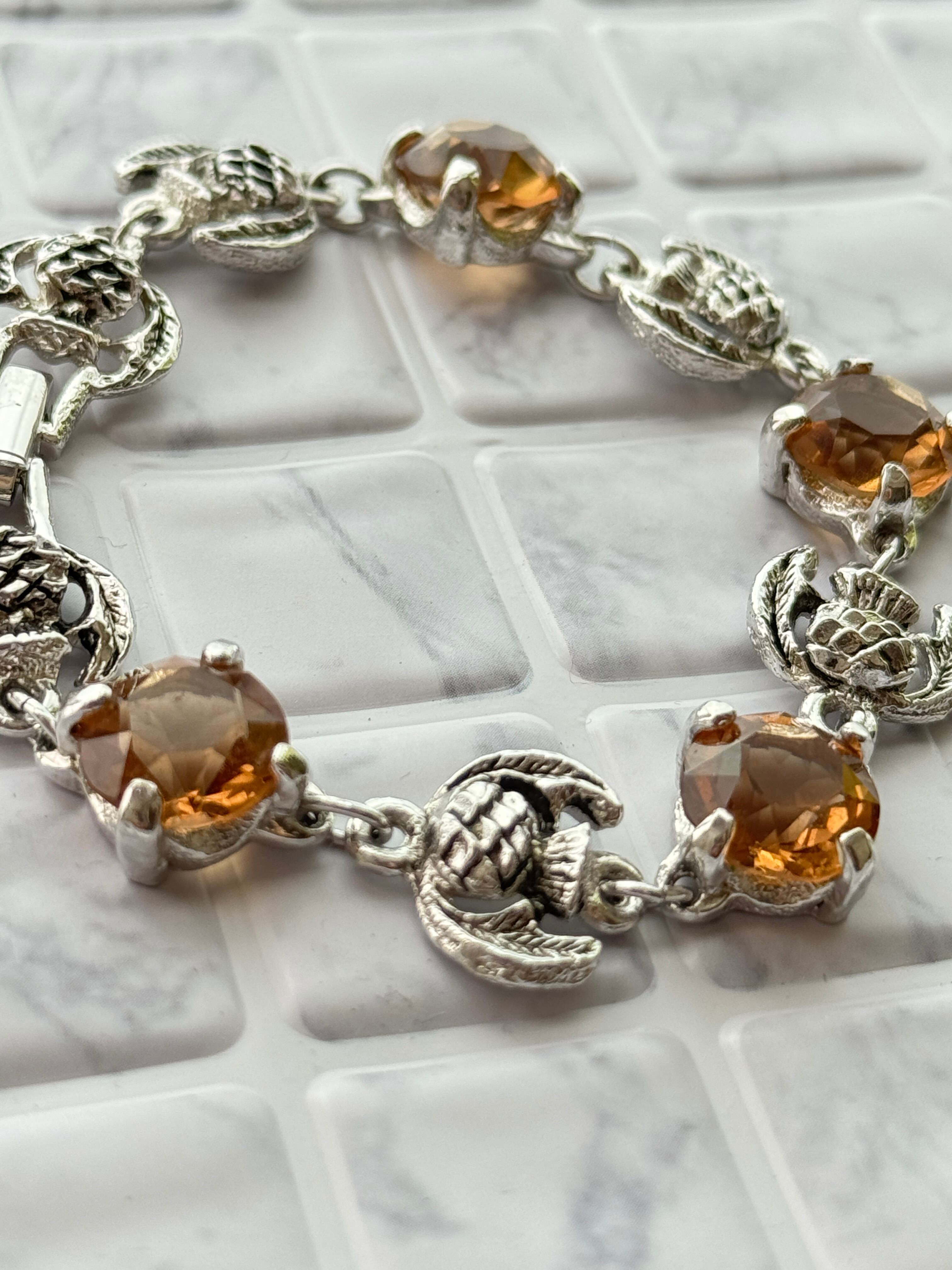 ケルト紋様のアザミモチーフとヴィンテージピンクカラーのガラスが美しいグッドヴィンテージのブレスレットです。