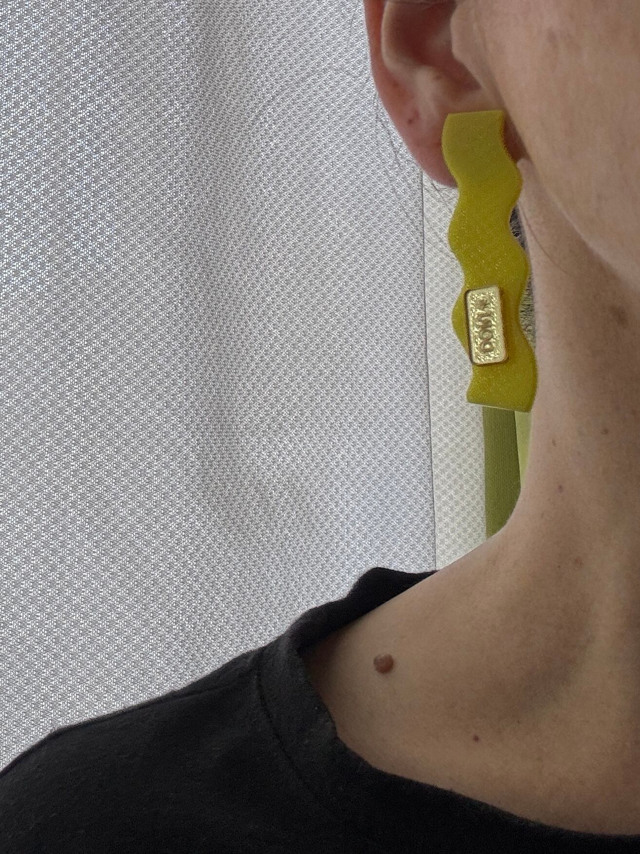 うねうねとした独特なデザインが印象的なピアスとイヤリングです。