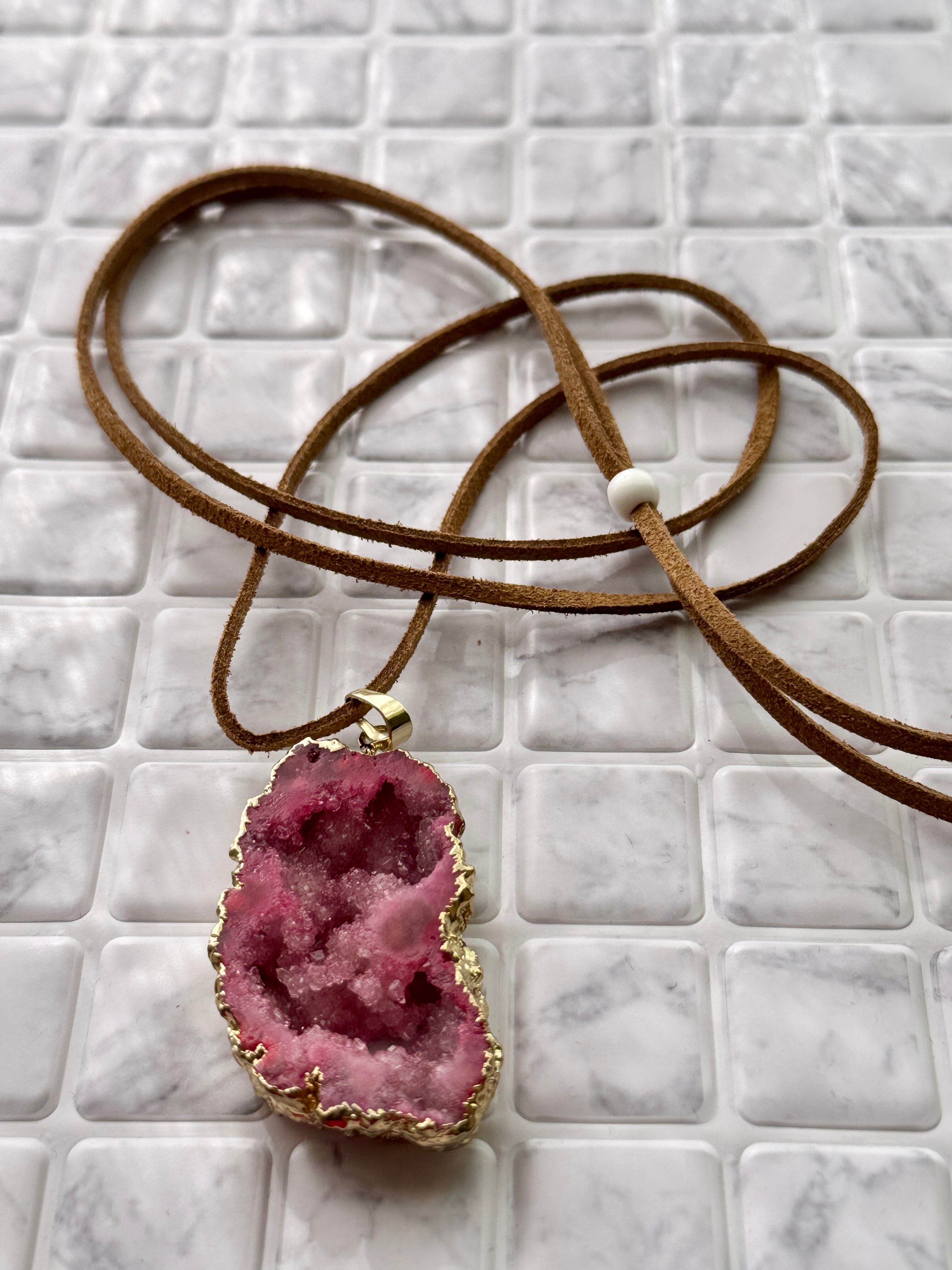 美しいピンクのドゥルージーが魅力のフリーネックレス!