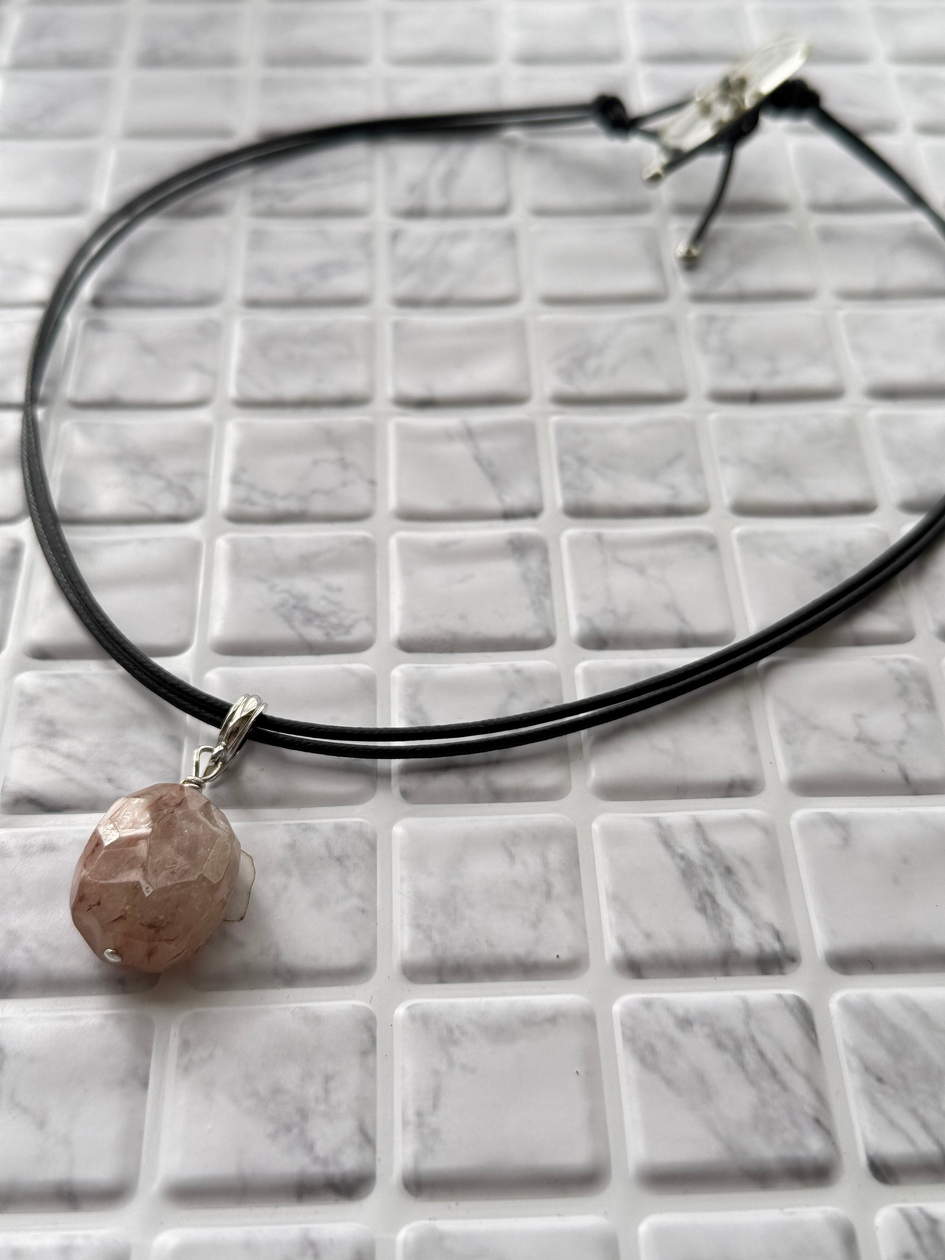 クォーツブラックコードネックレス、シンプルかつ洗練されたデザインで、あらゆるスタイルにマッチする魅力のアイテムです!