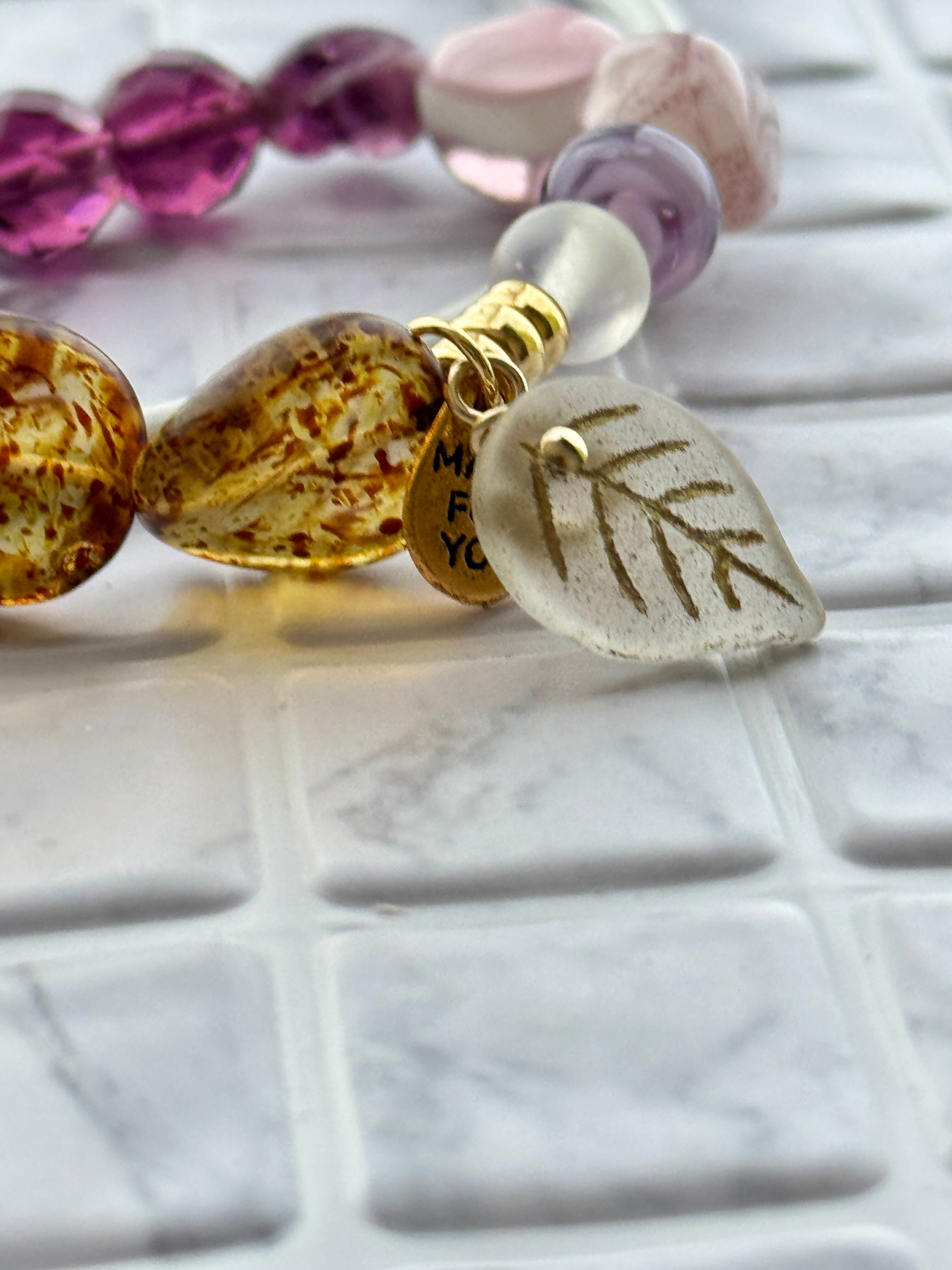チェリーブランドのガラスビーズやk14gfを使用したデザインが目を引くこのブレスレットは、あなたの手元を華やかに演出します。