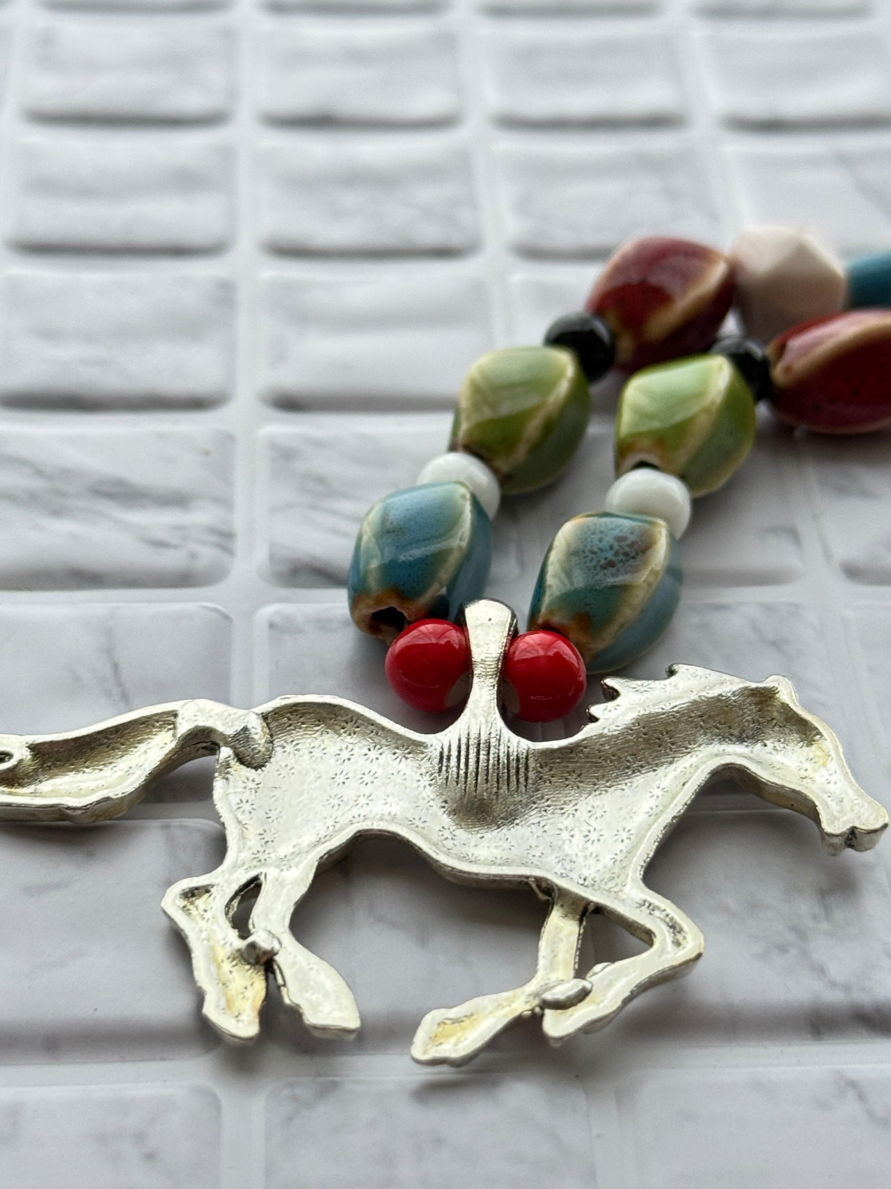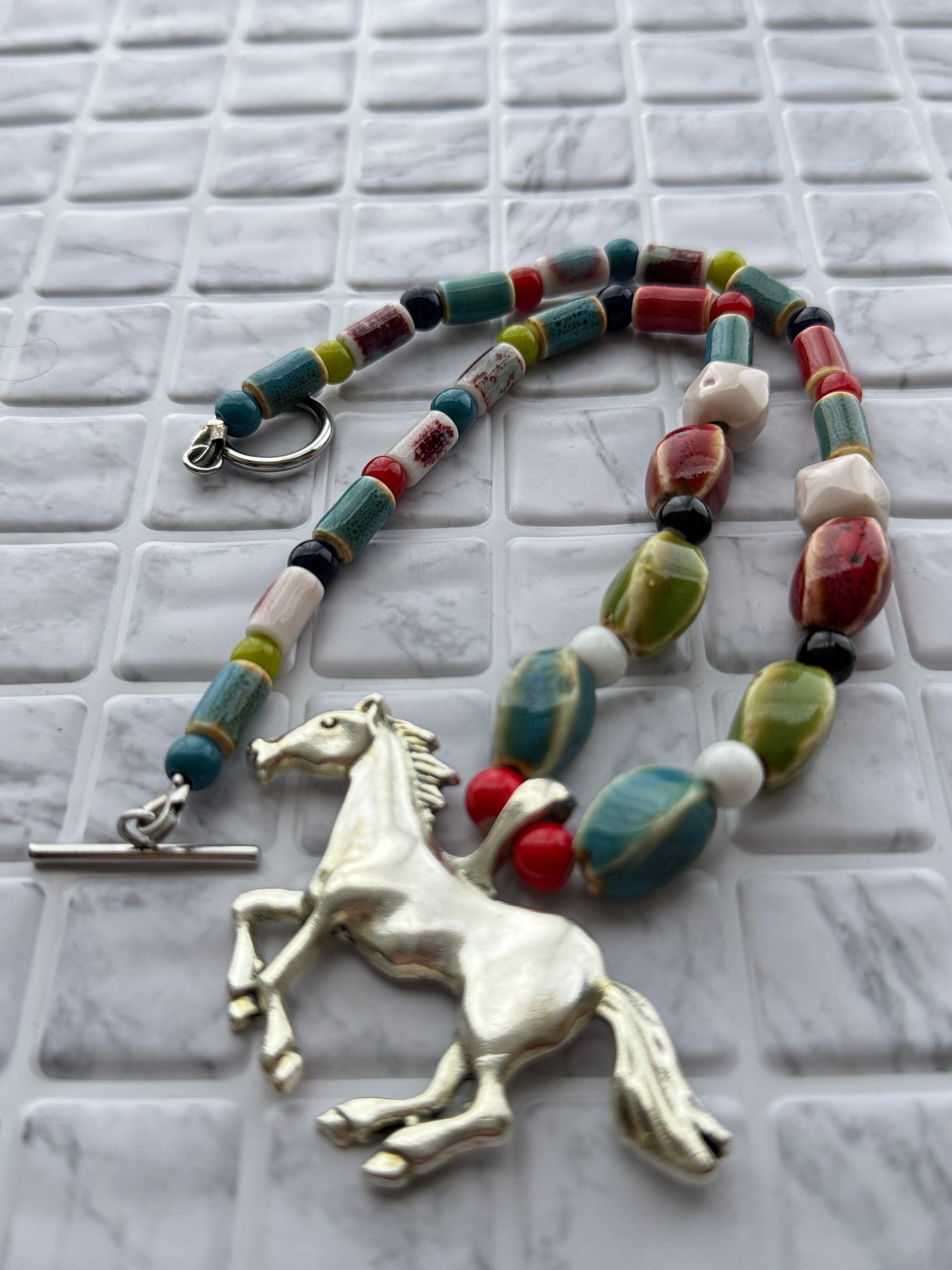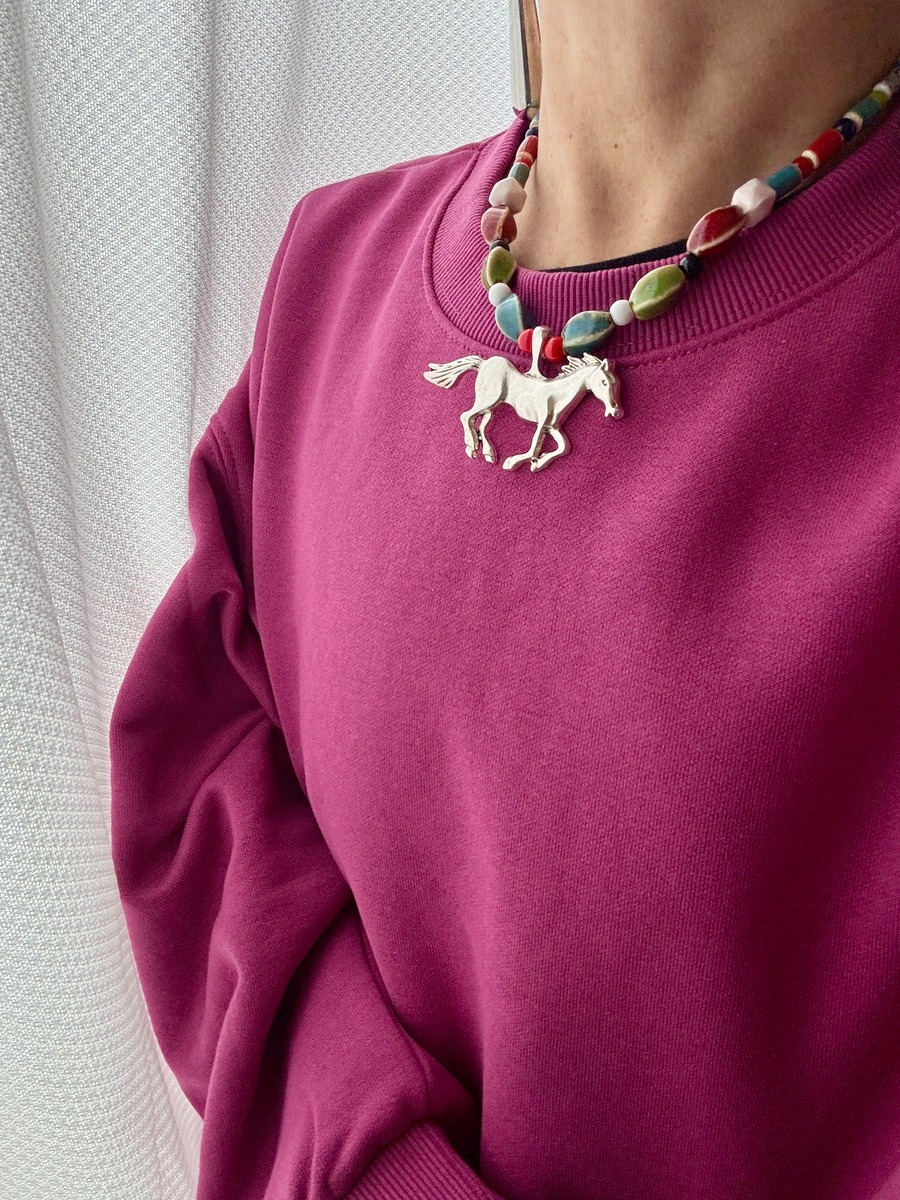 シンプルながらも存在感のあるデザインが秀逸なこのネックレスは、あなたのデコルテを美しく引き立てます。シルバー素材に仕上げられたホースモチーフが、特別なシーンでもカジュアルスタイルにもぴったりのアクセントを与え、どんなコーディネートにもマッチします。