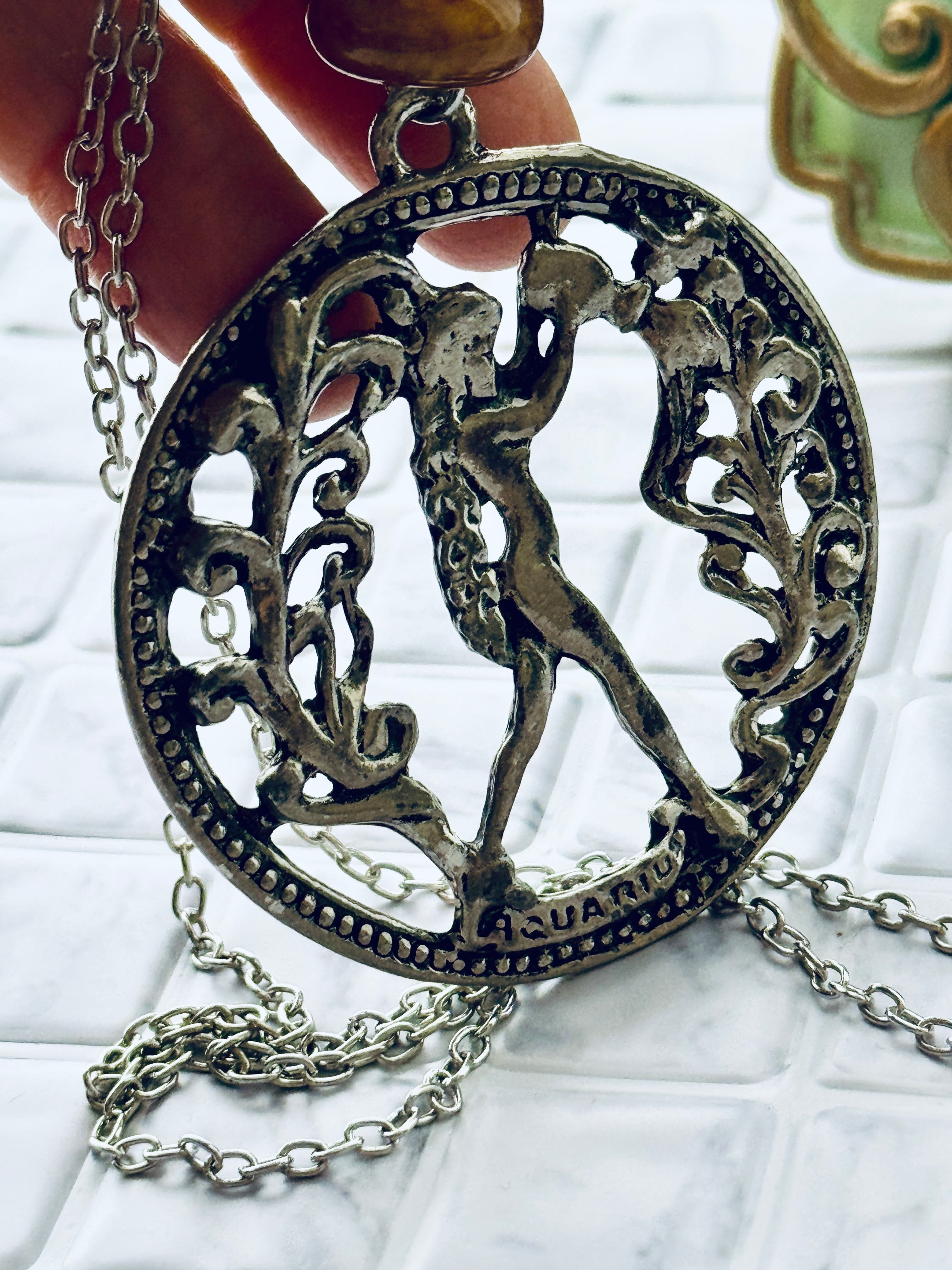 このネックレスは、アクエリアスをモチーフにしたデザインが特徴で、首元に爽やかさをプラスします。