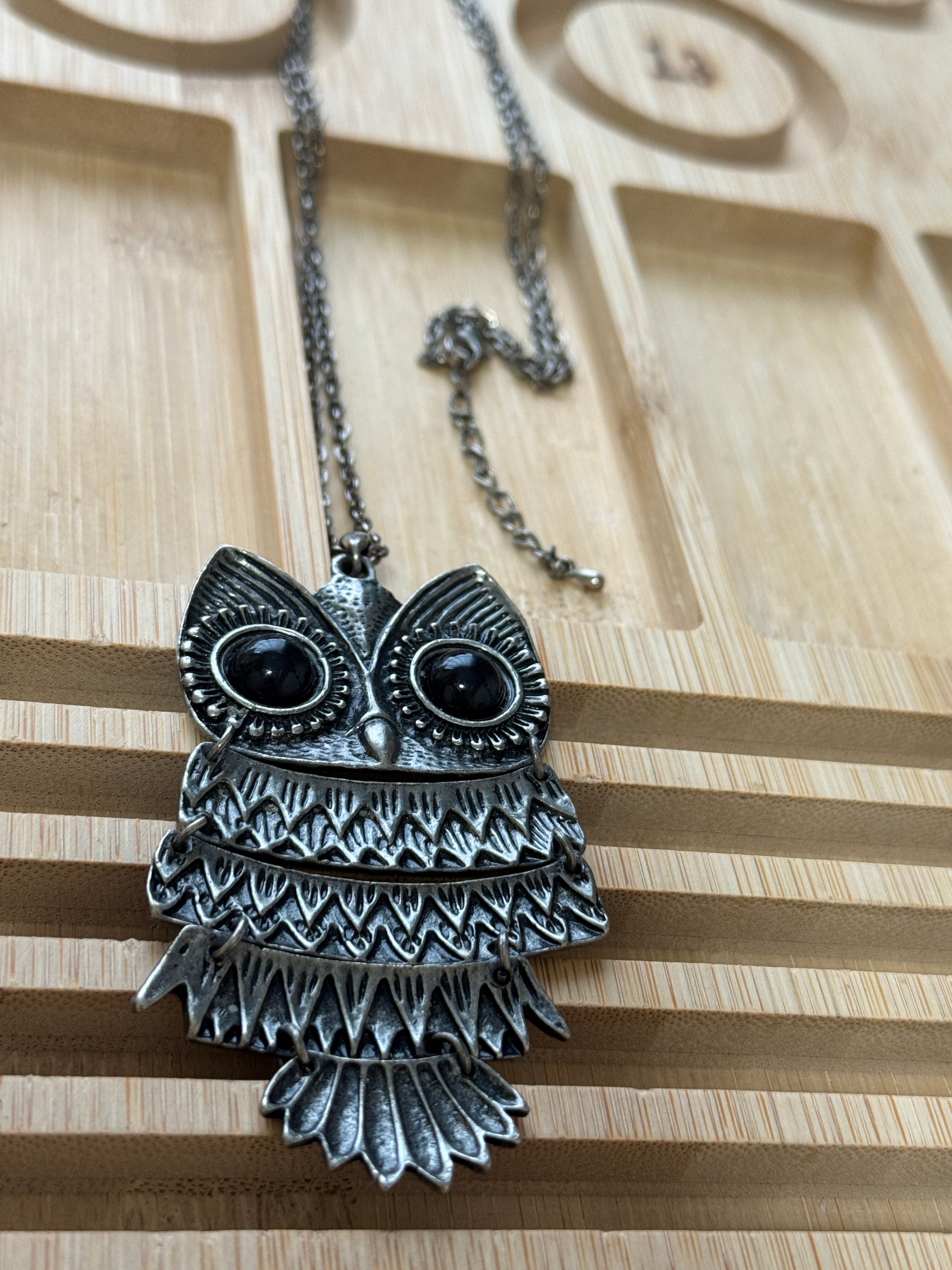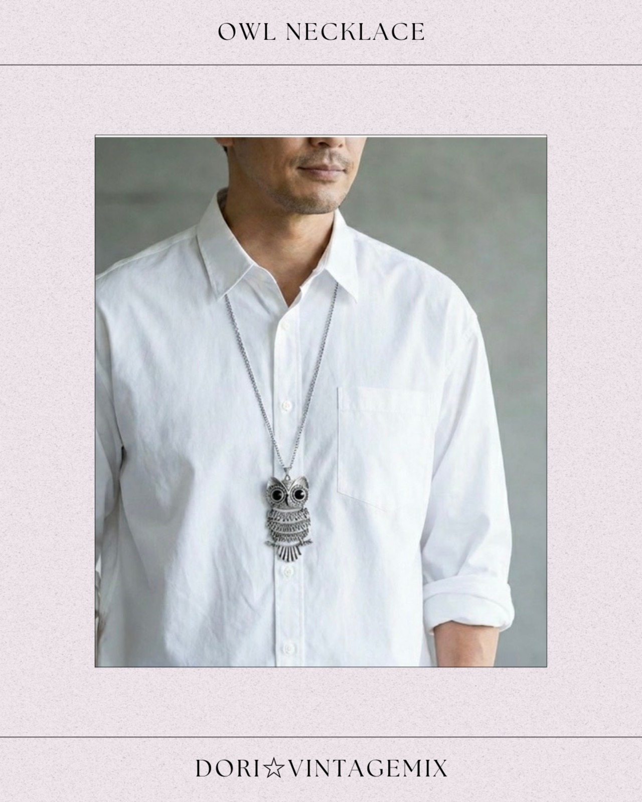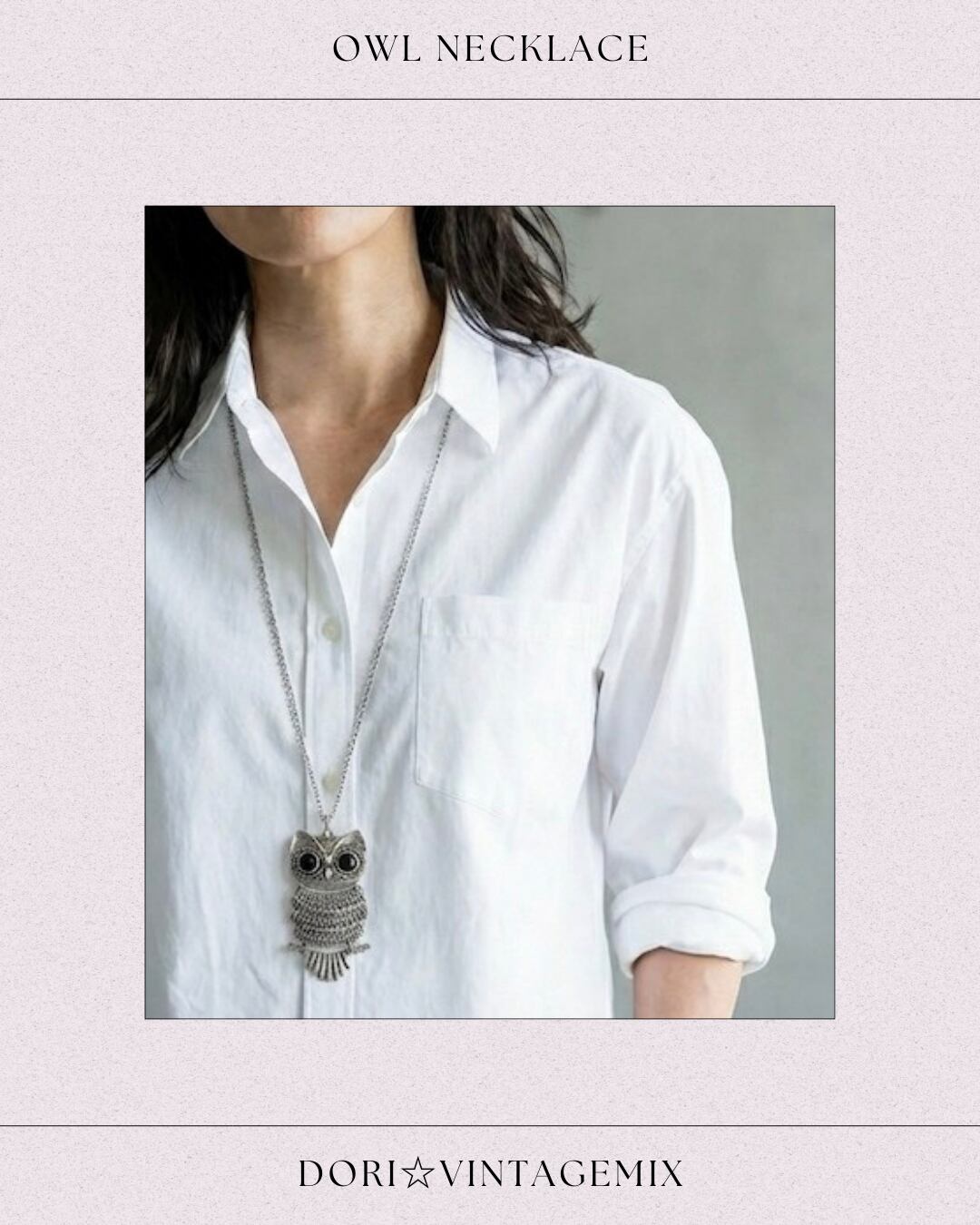 このネックレスは、エレガントなフクロウのデザインと洗練されたロングスタイルが特徴です。