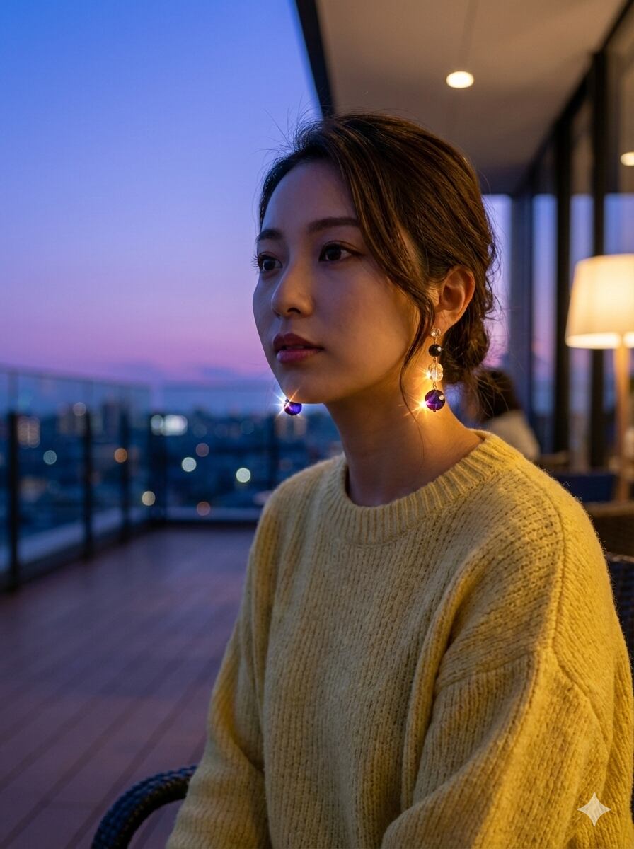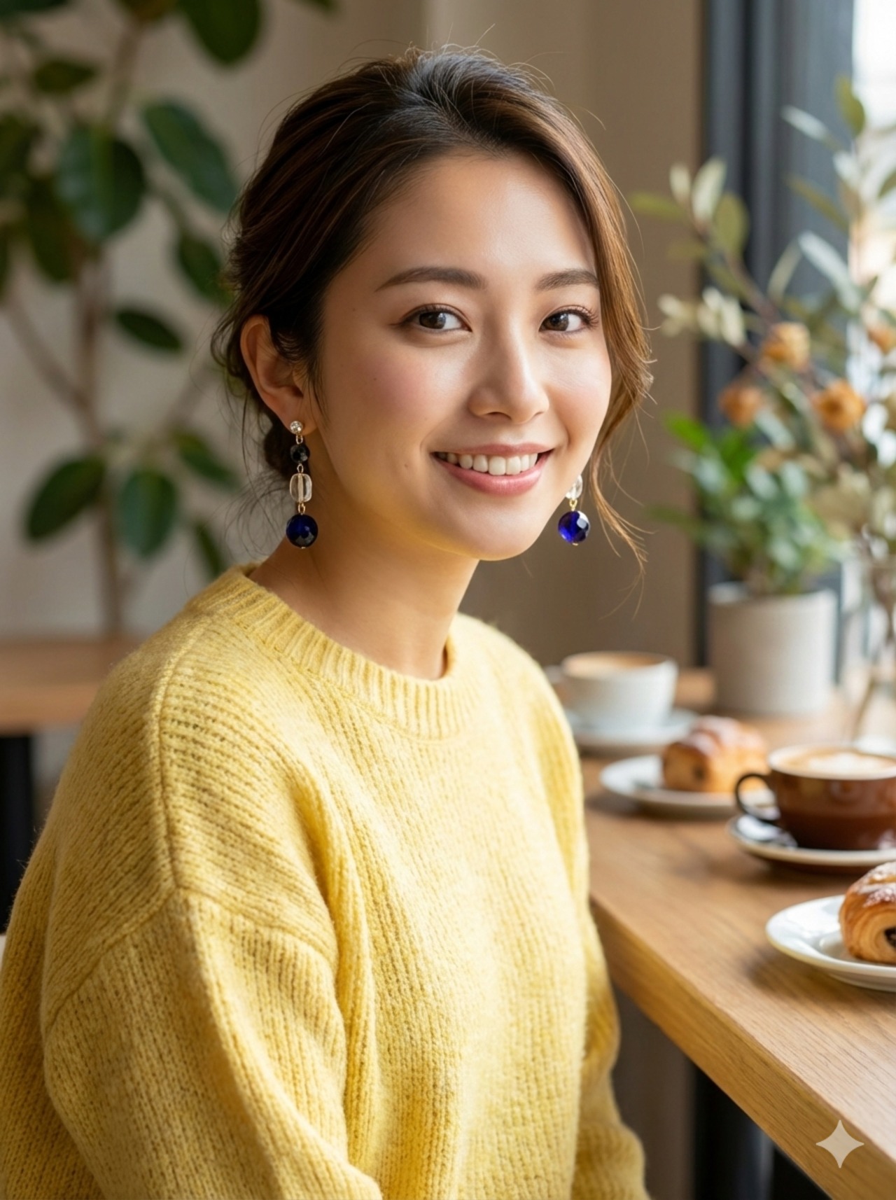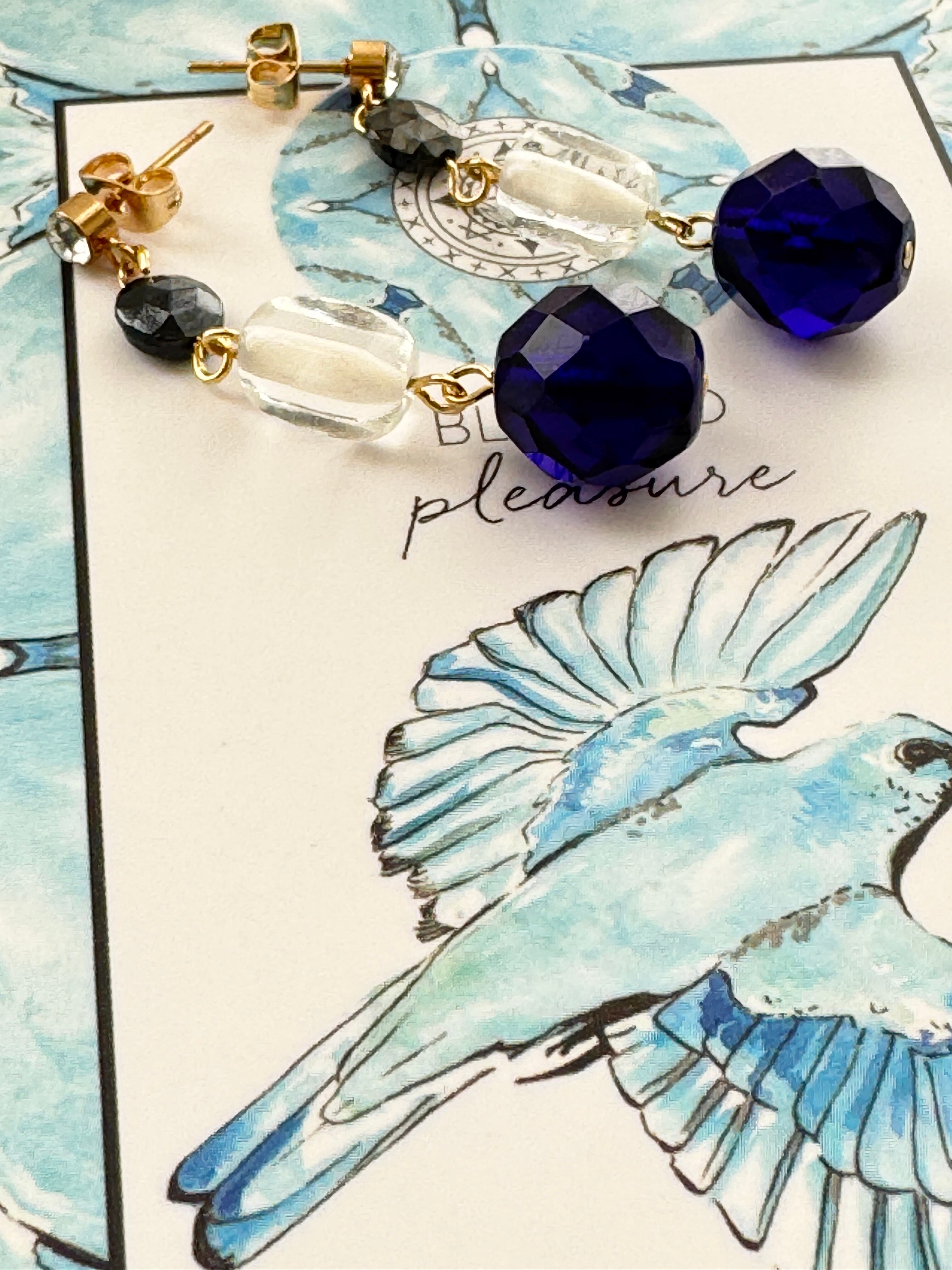 ガラスビーズは光を受けてキラキラと輝き、耳元で優雅に揺れる様子が魅力的です♪ さりげなく着けられるサイズ感が、日常使いにもおすすめです。
