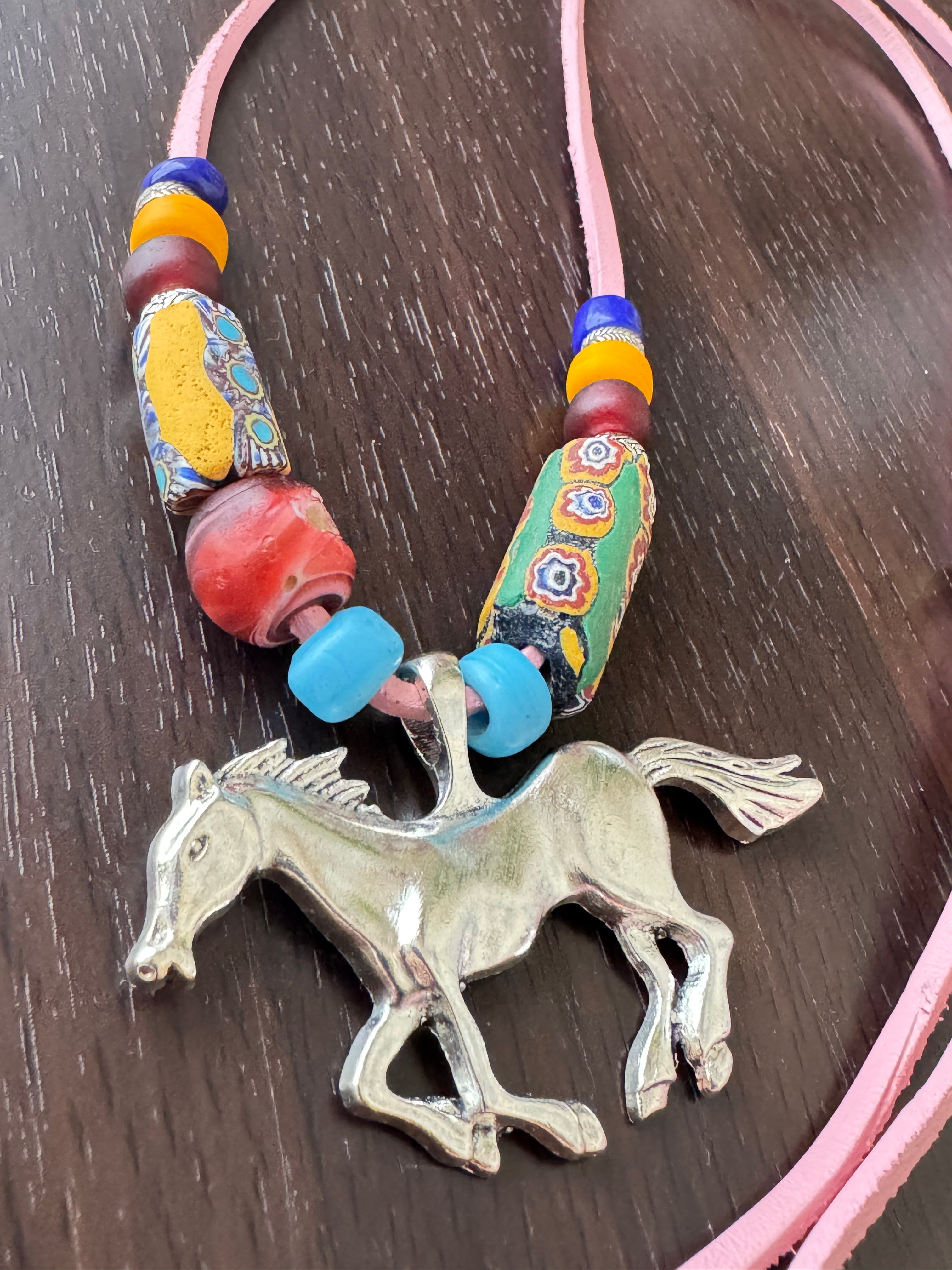 愛らしい魅力の【お馬さんピンクレザーコードネックレスシリーズ】