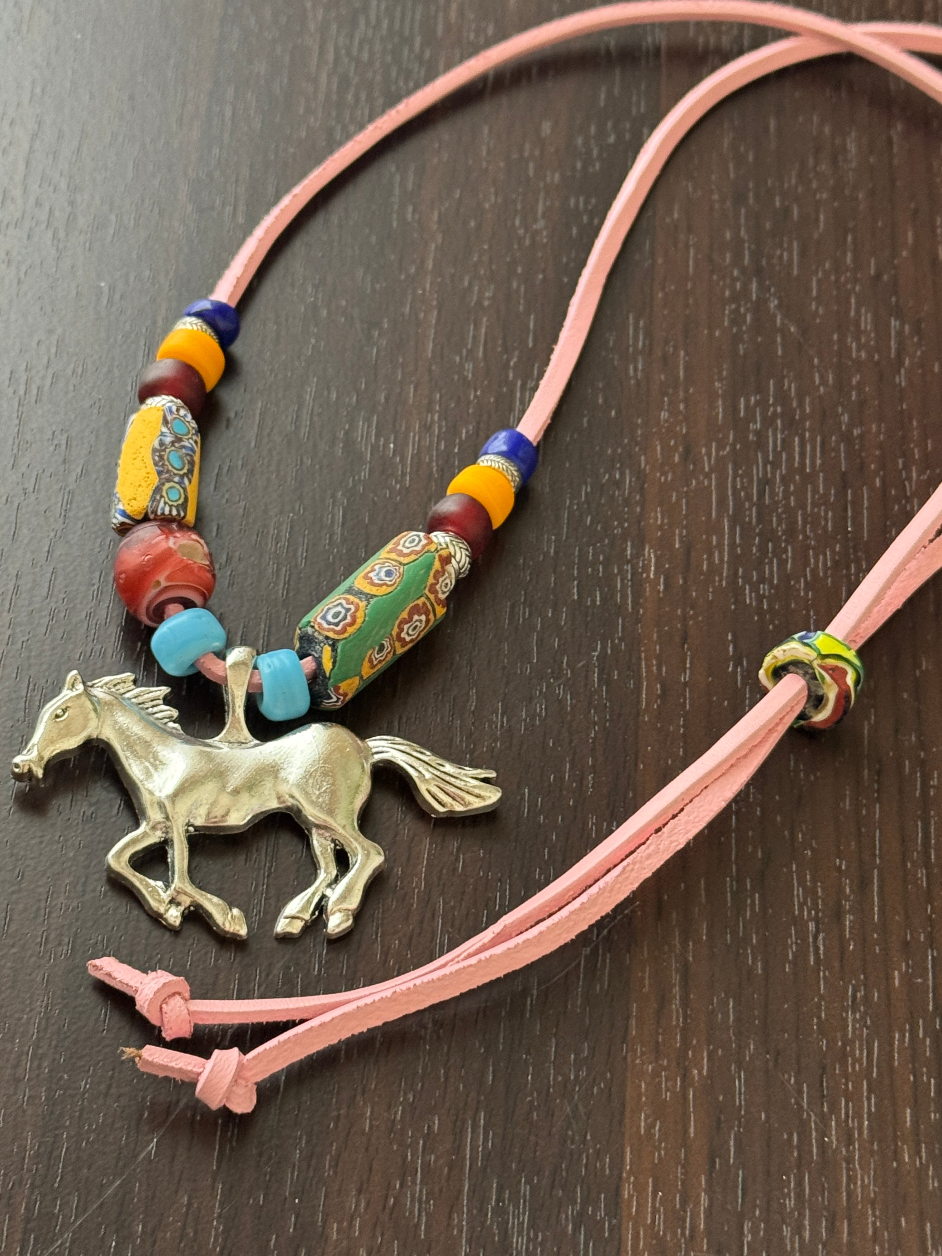 お馬さんピンクレザーコードネックレス/フリー
