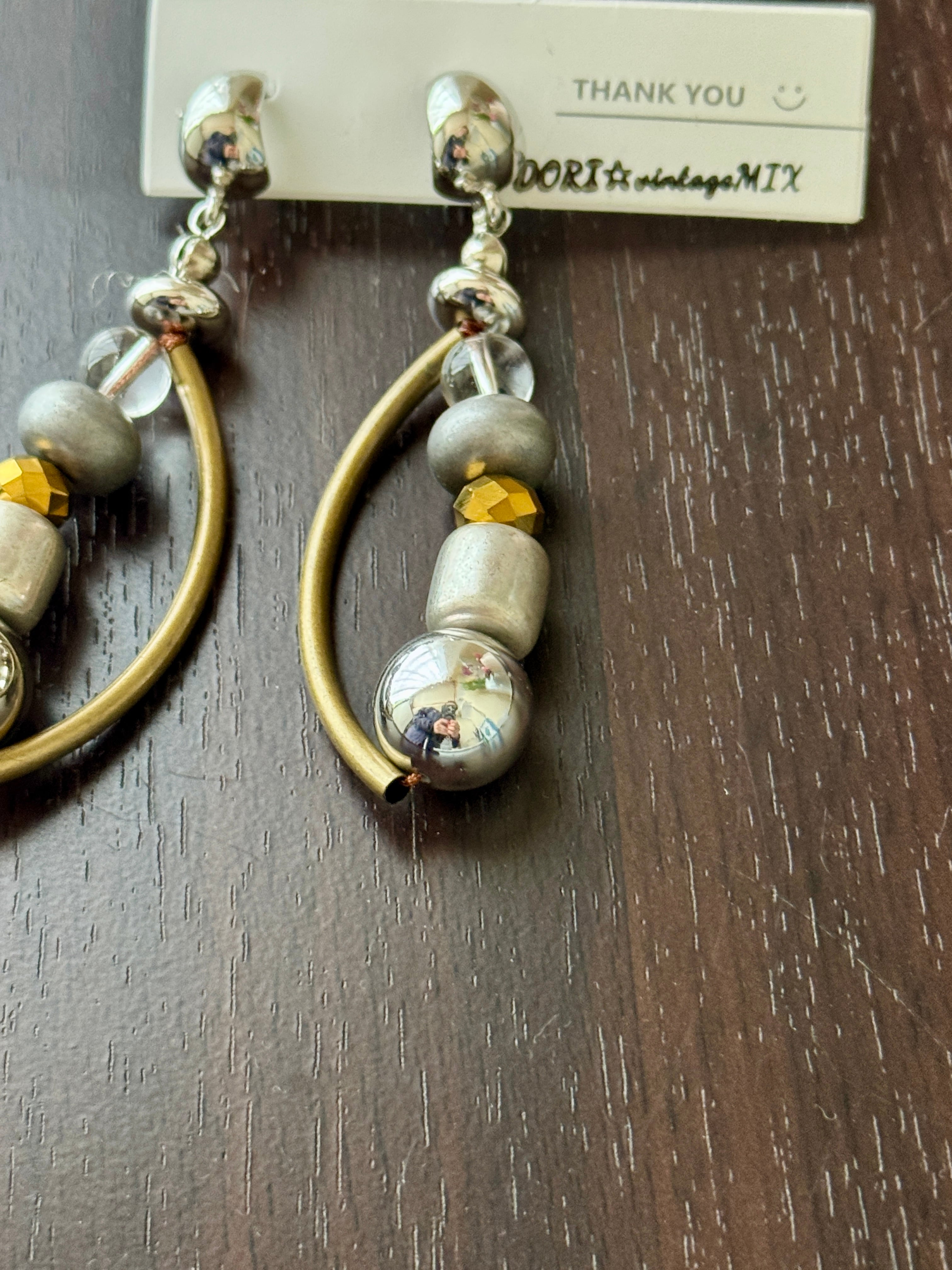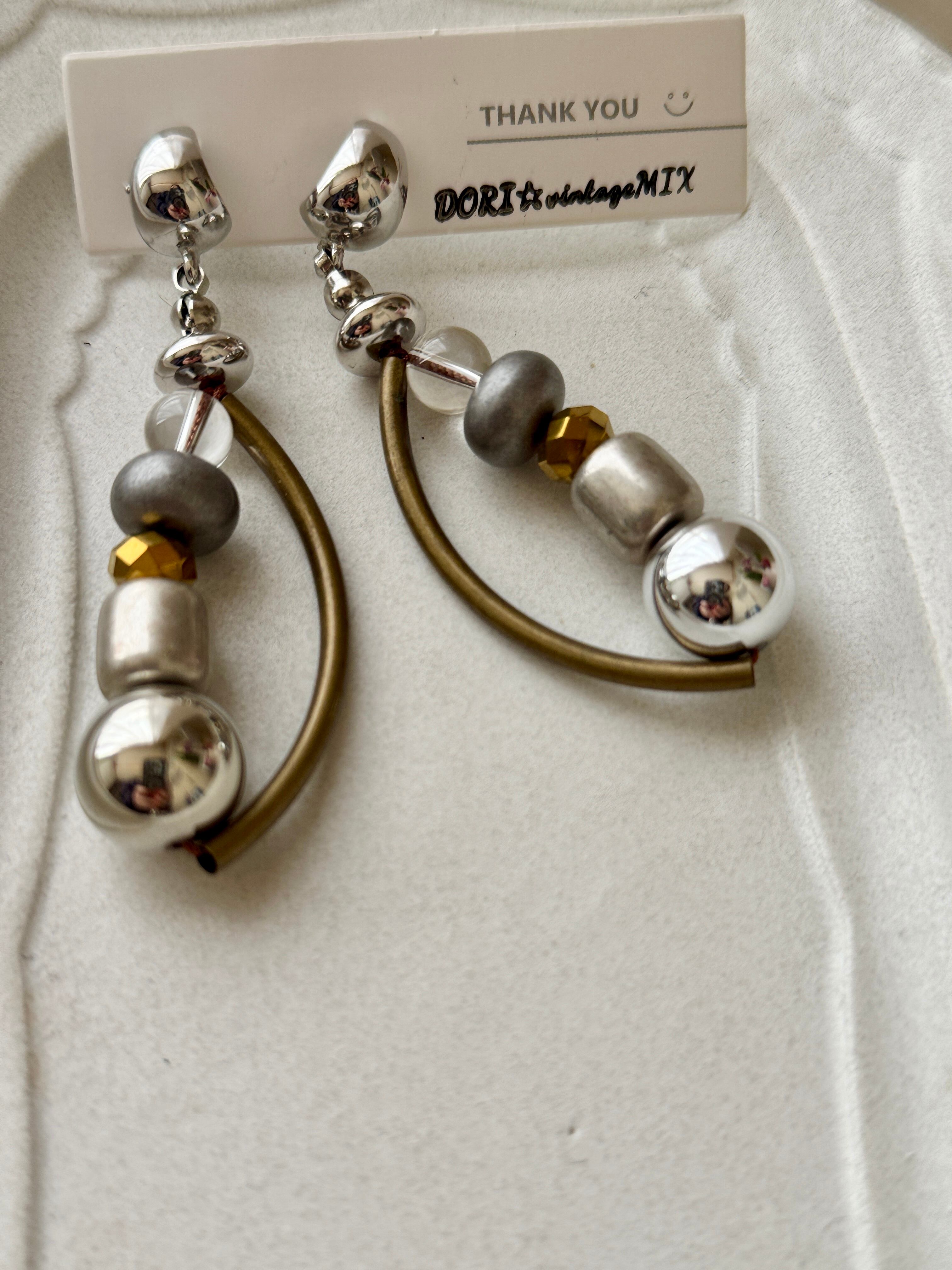 真鍮カラーやシルバーをミックスさせた、スタイリッシュでユニークなデザインは、どんなスタイルにも合わせやすく、個性的なファッションを楽しむ方にもぴったりです☆