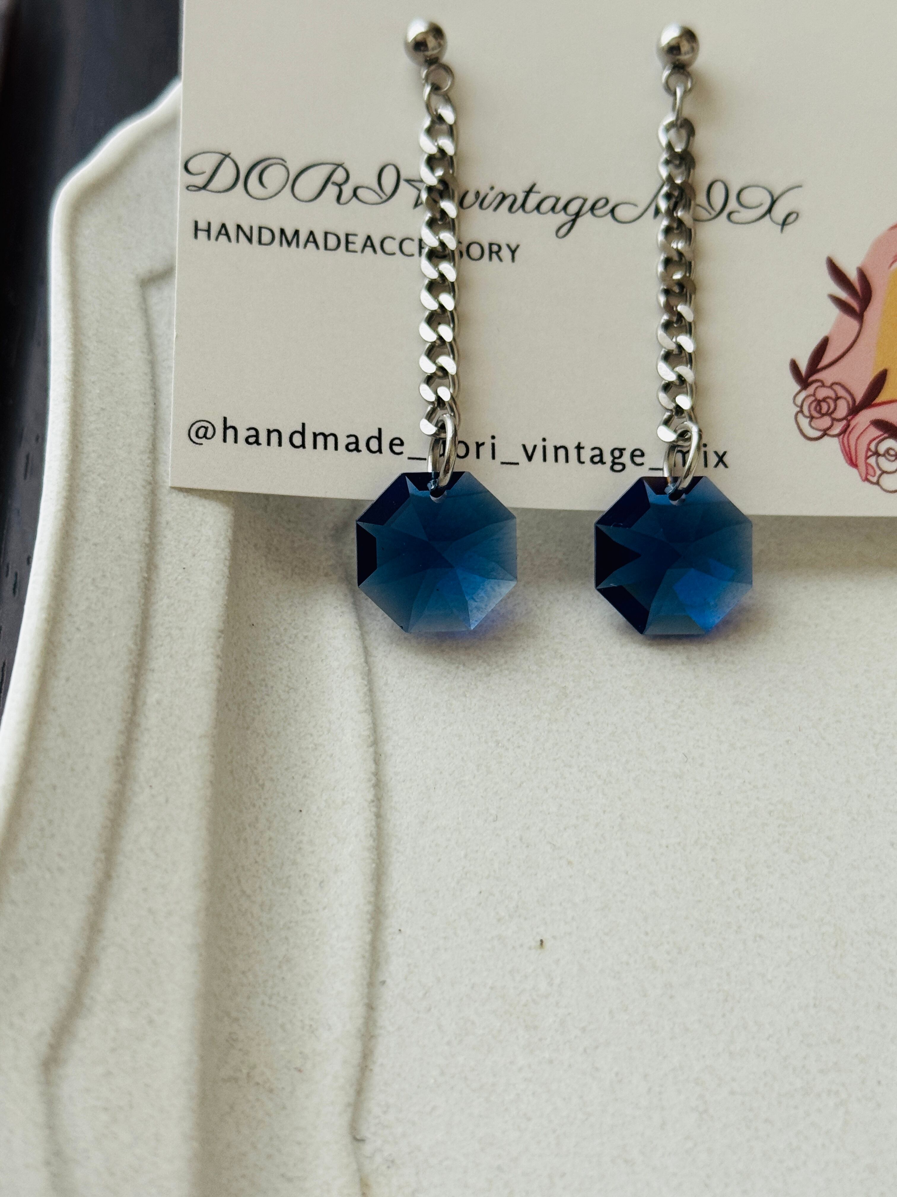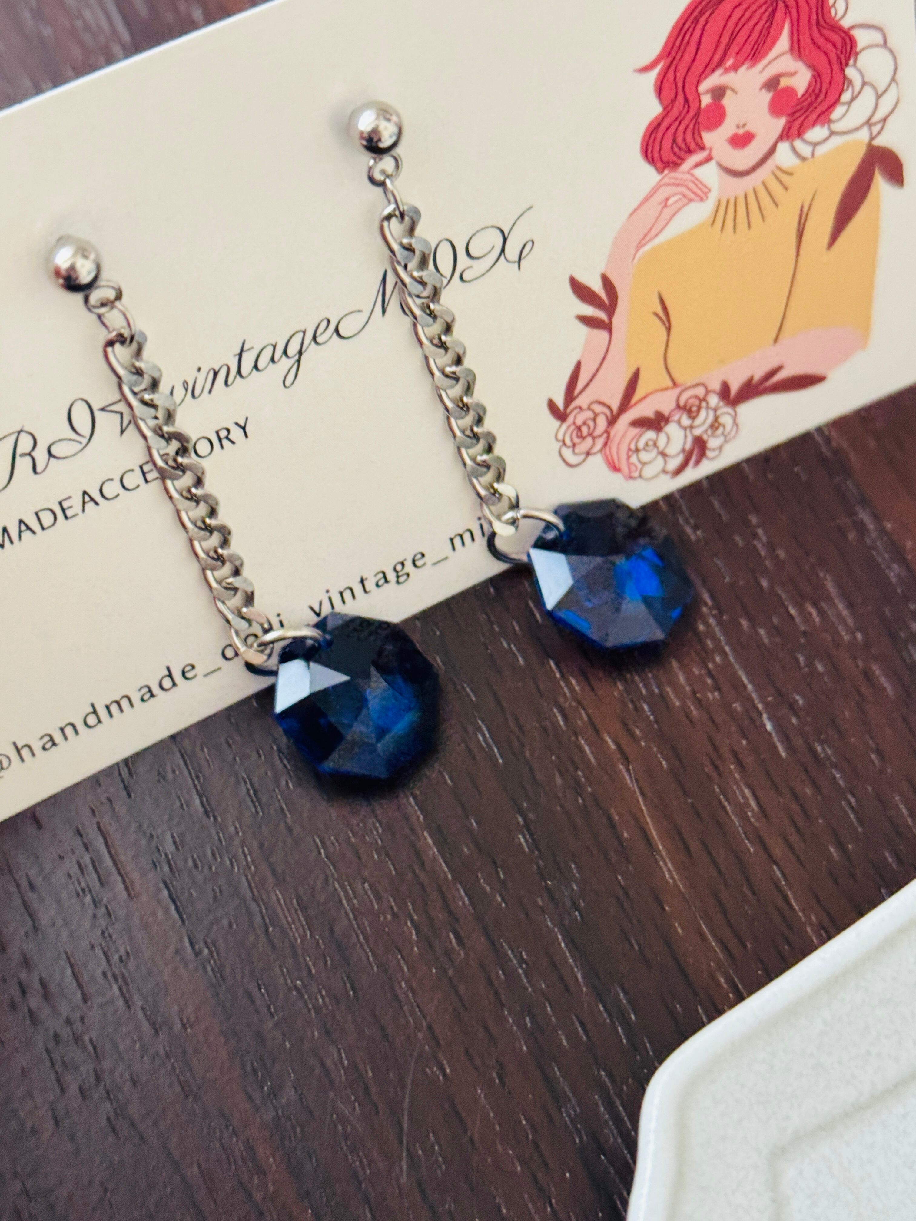 ネイビーの深い色合いが美しい【ネイビークリスタルロングピアス】