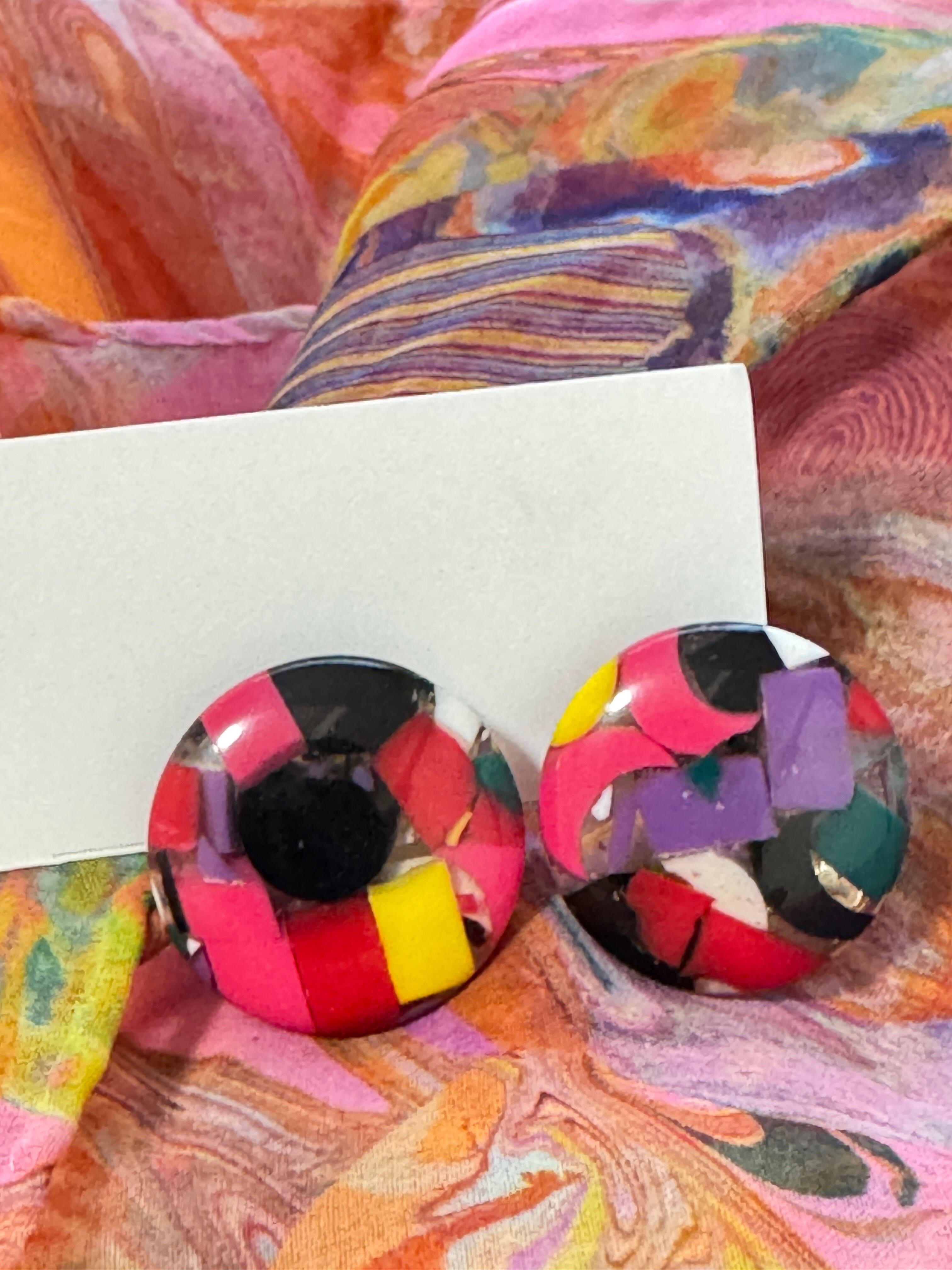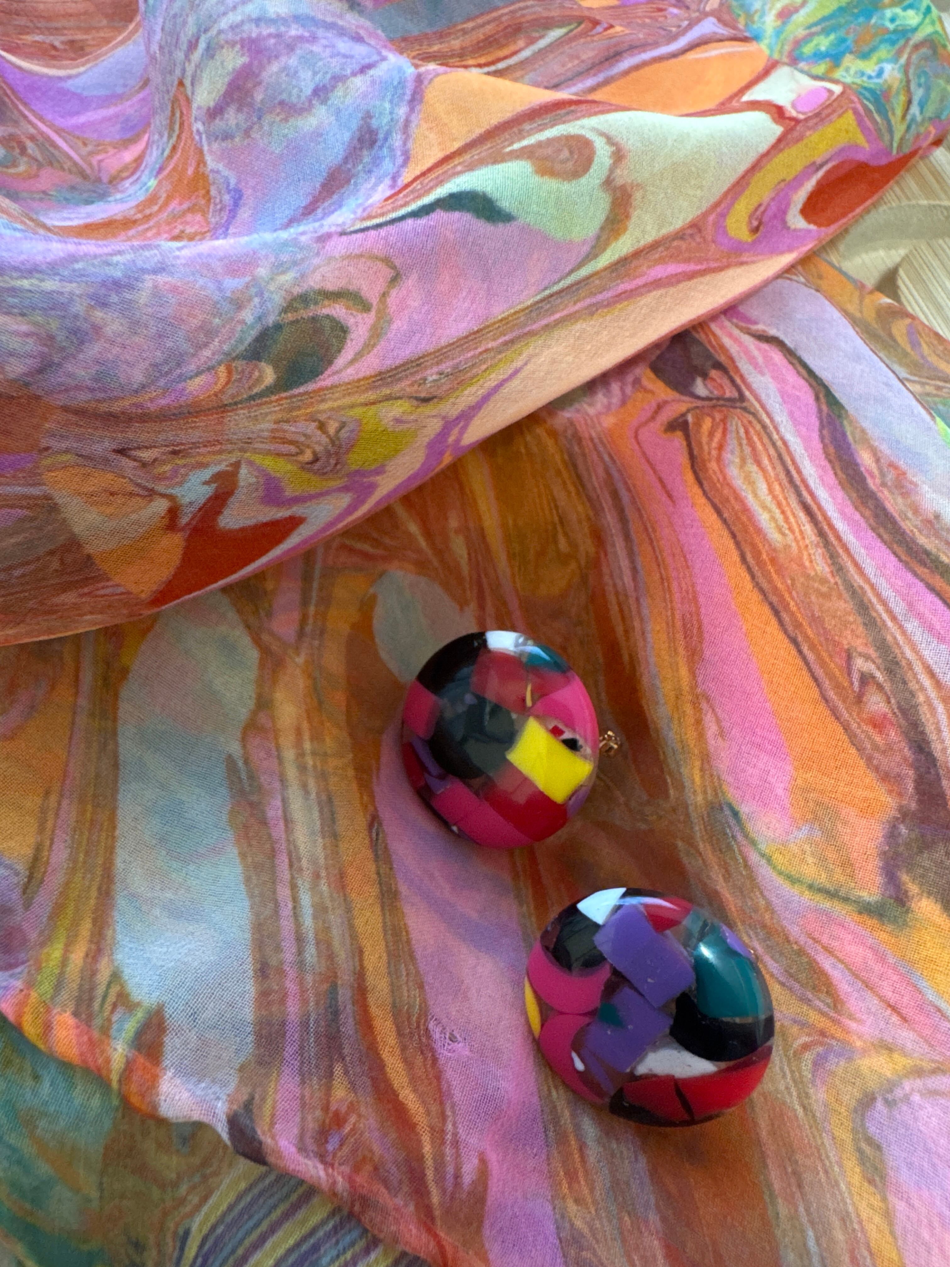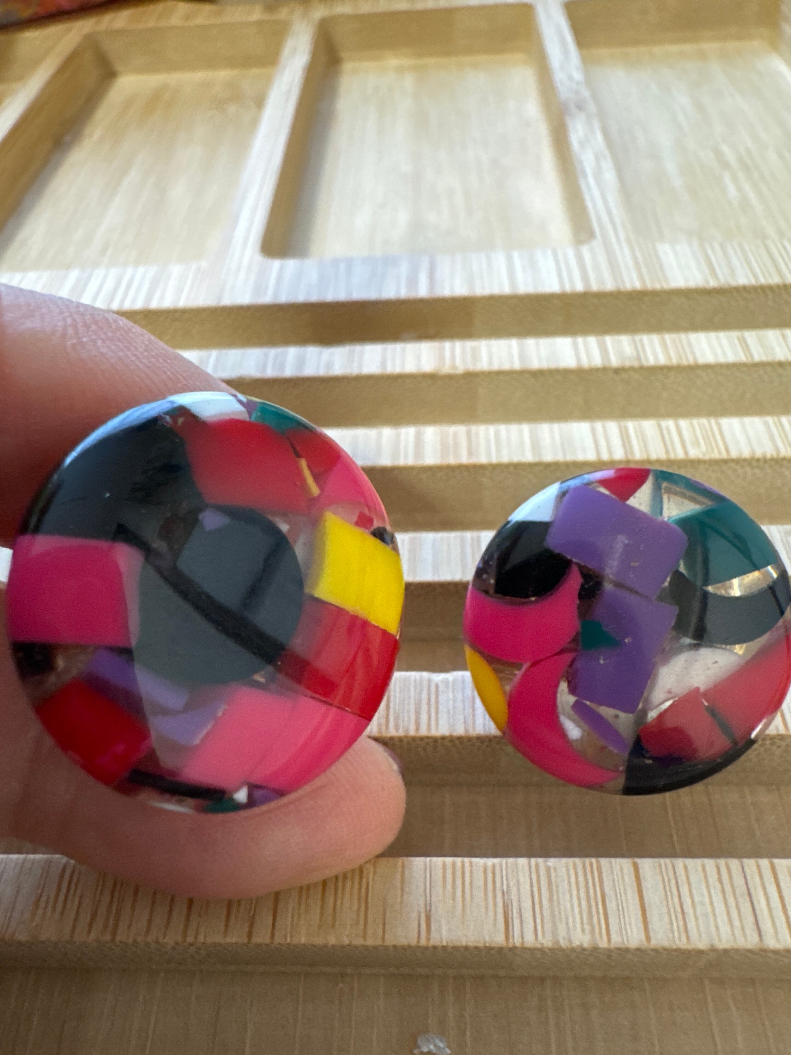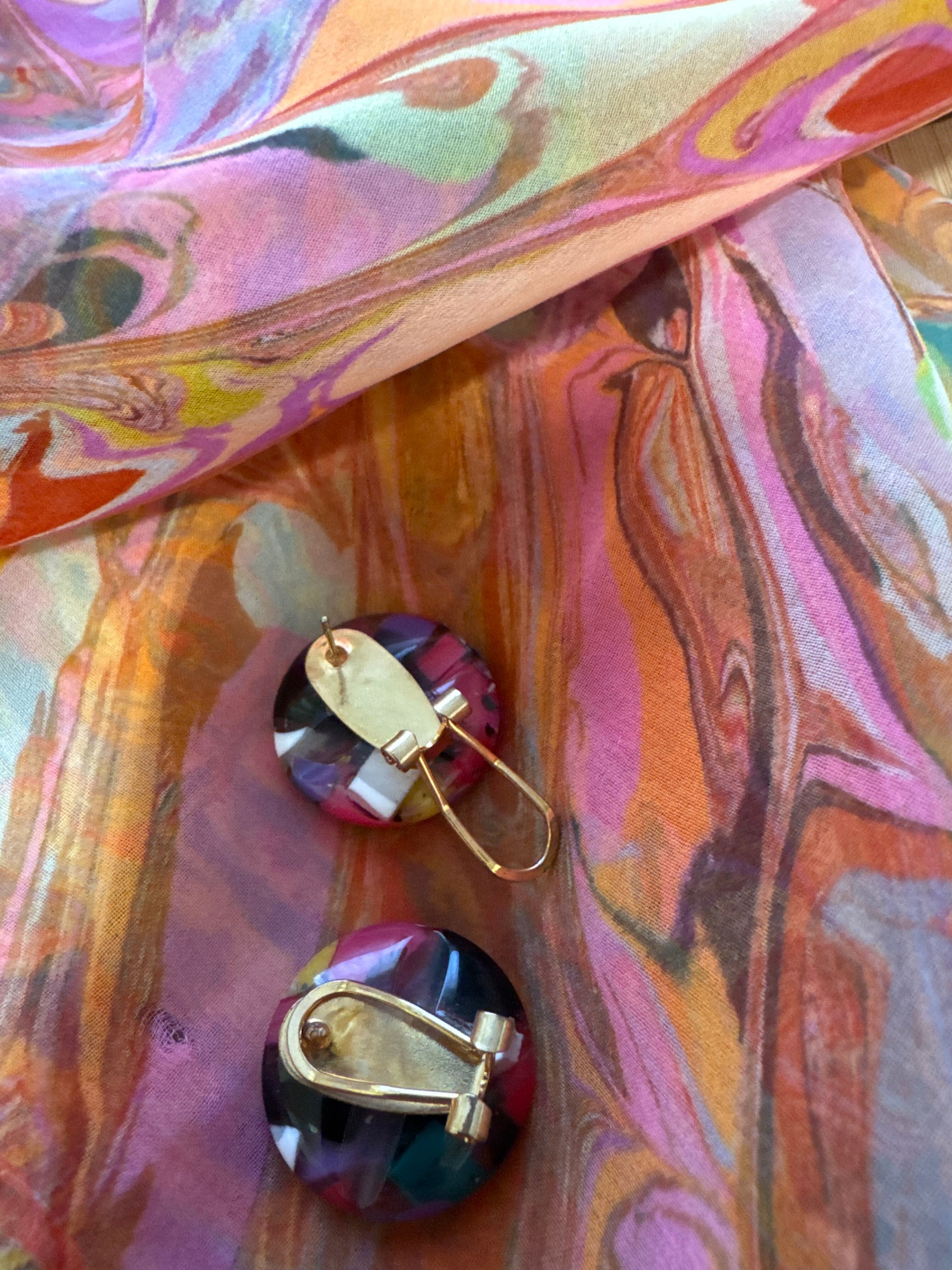 おしゃれな石鹸みたいなアートなビンテージボタンをピアスに仕立てました。